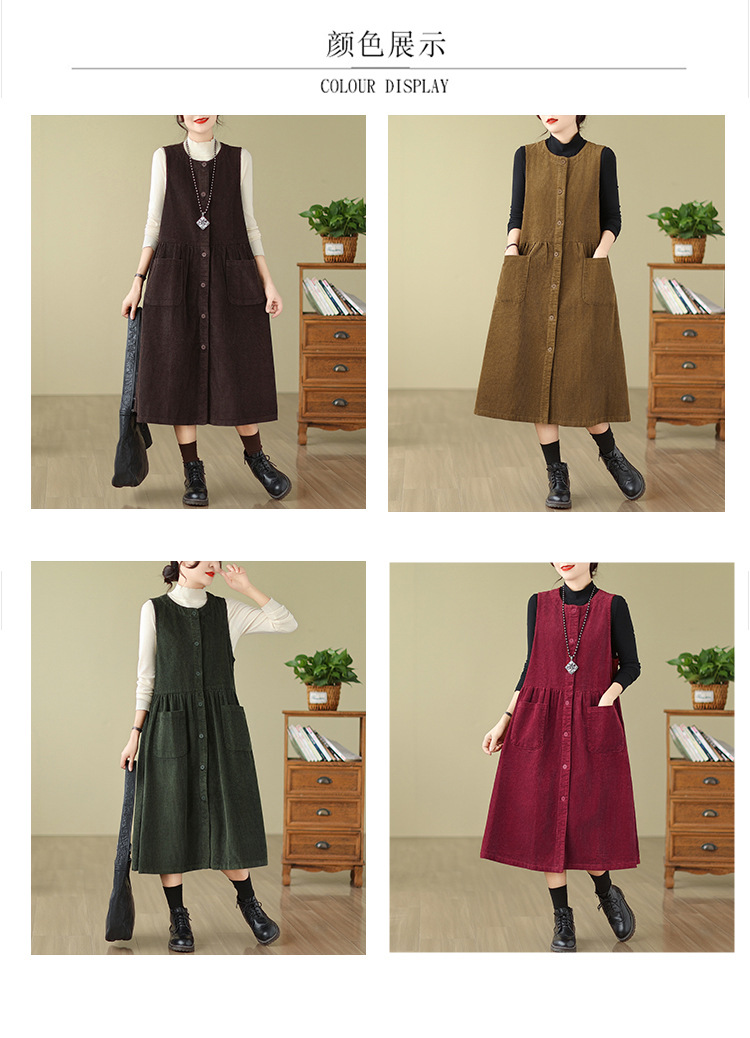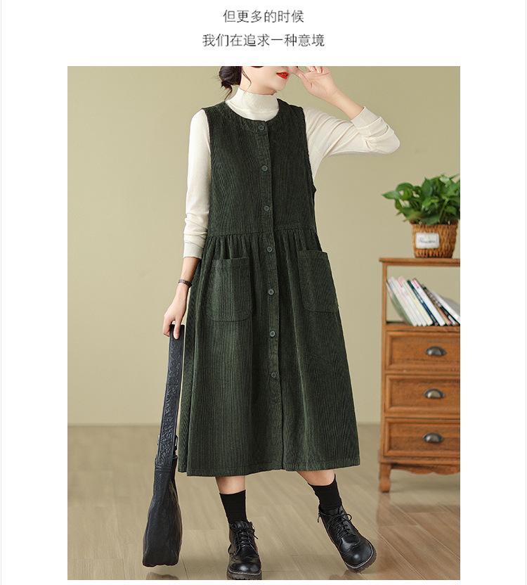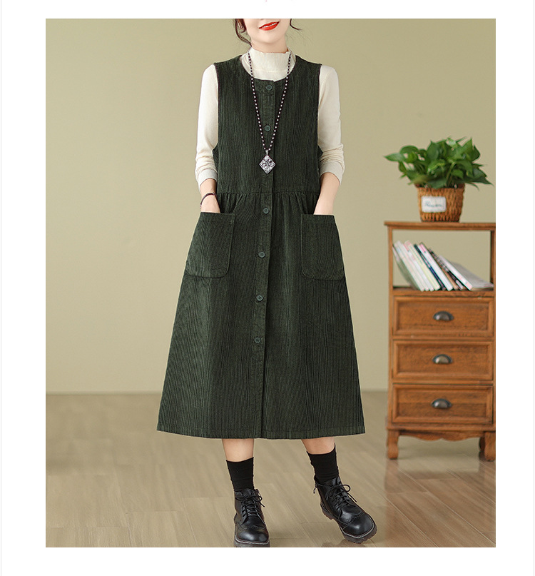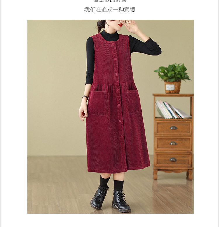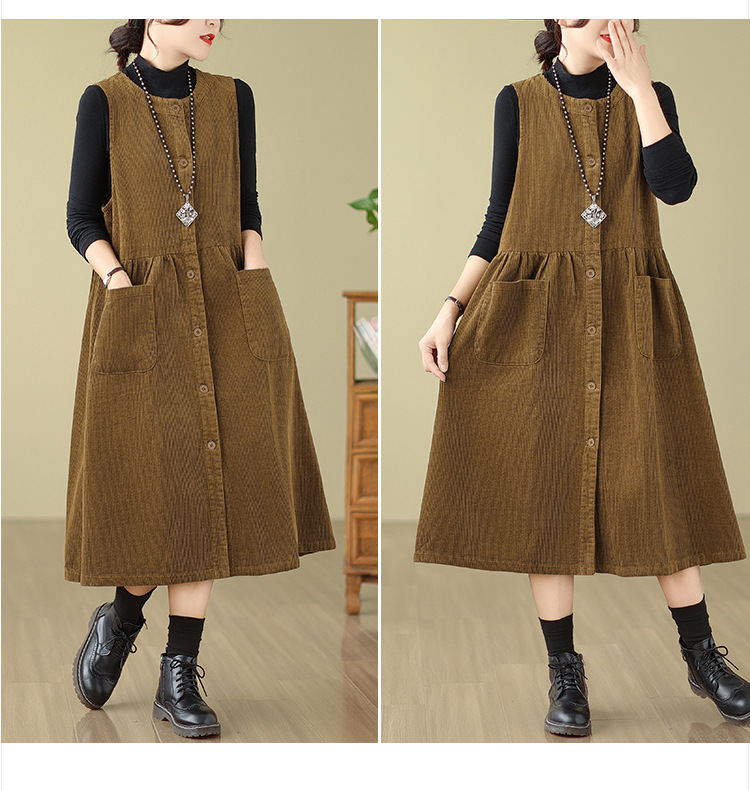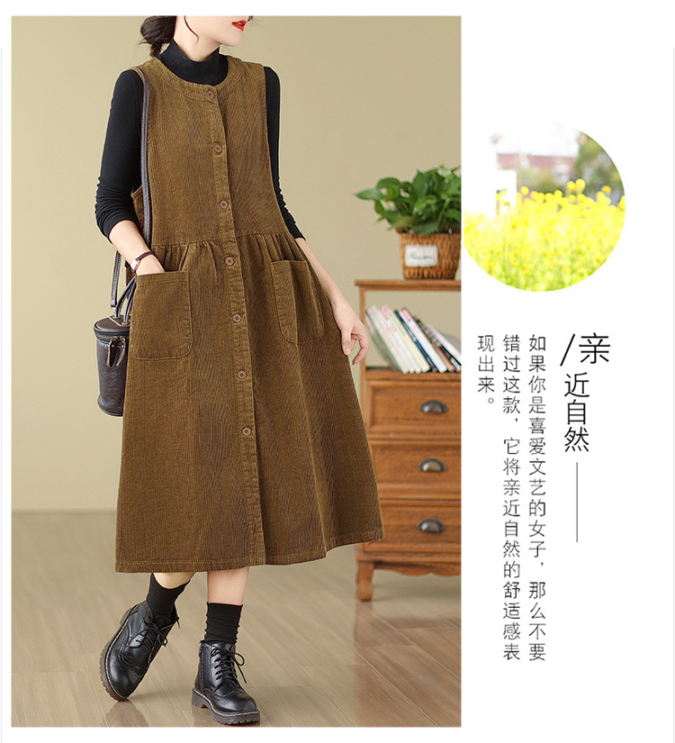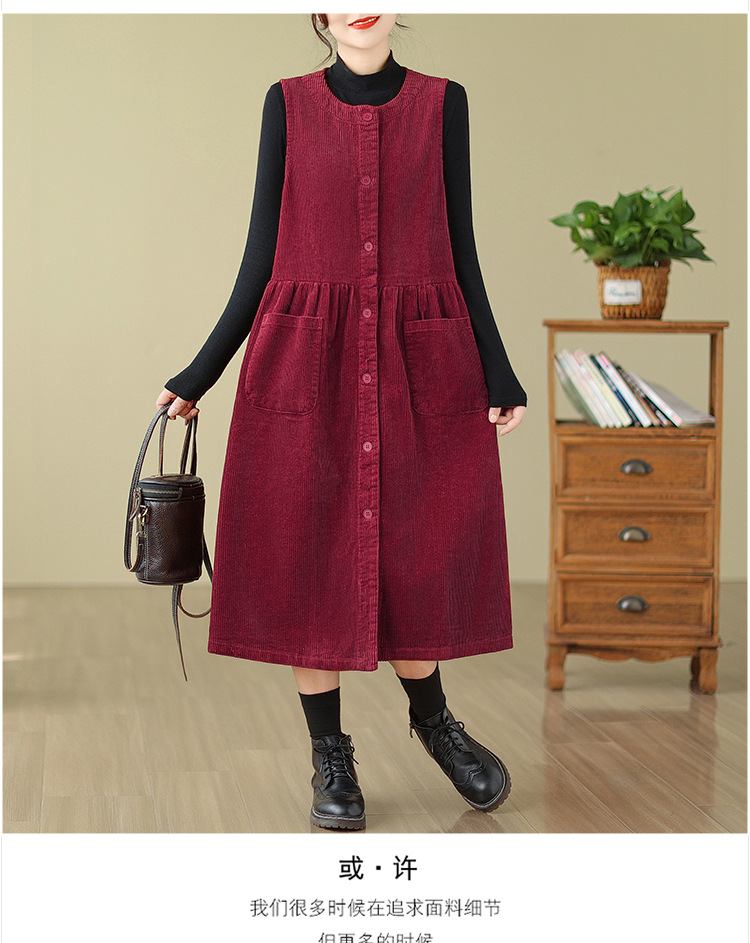 実拍図秋冬ワンピースコーデュロイベストスカートファッションゆるい減齢高級女装