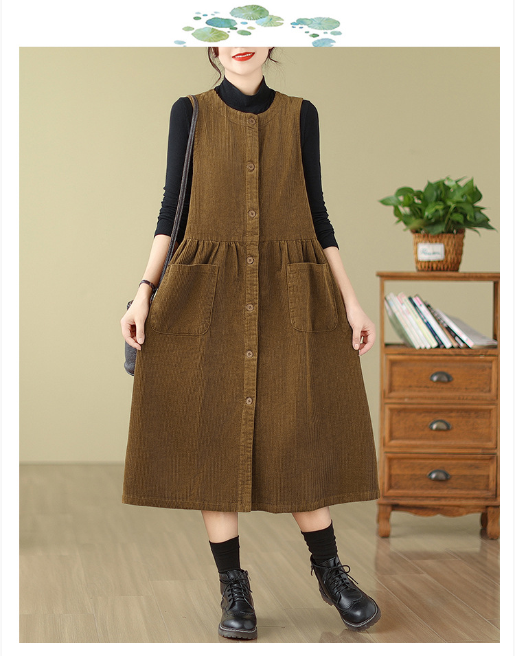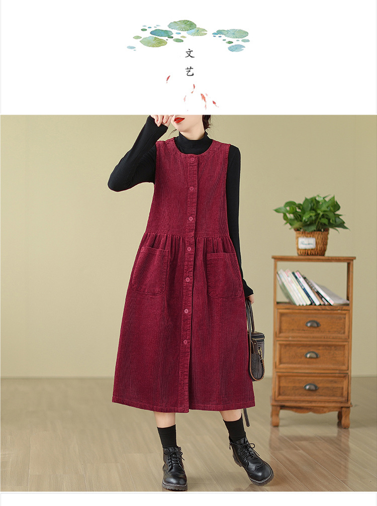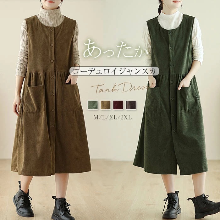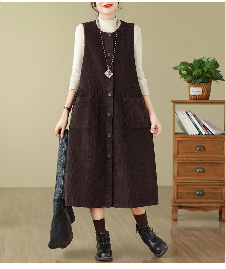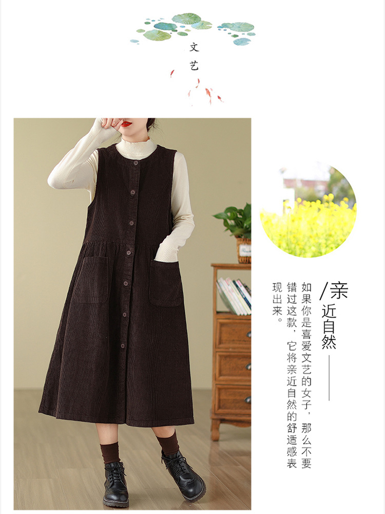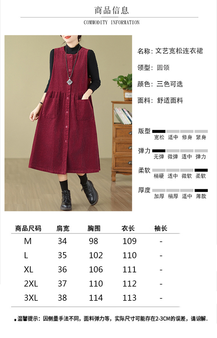 実拍図秋冬ワンピースコーデュロイベストスカートファッションゆるい減齢高級女装