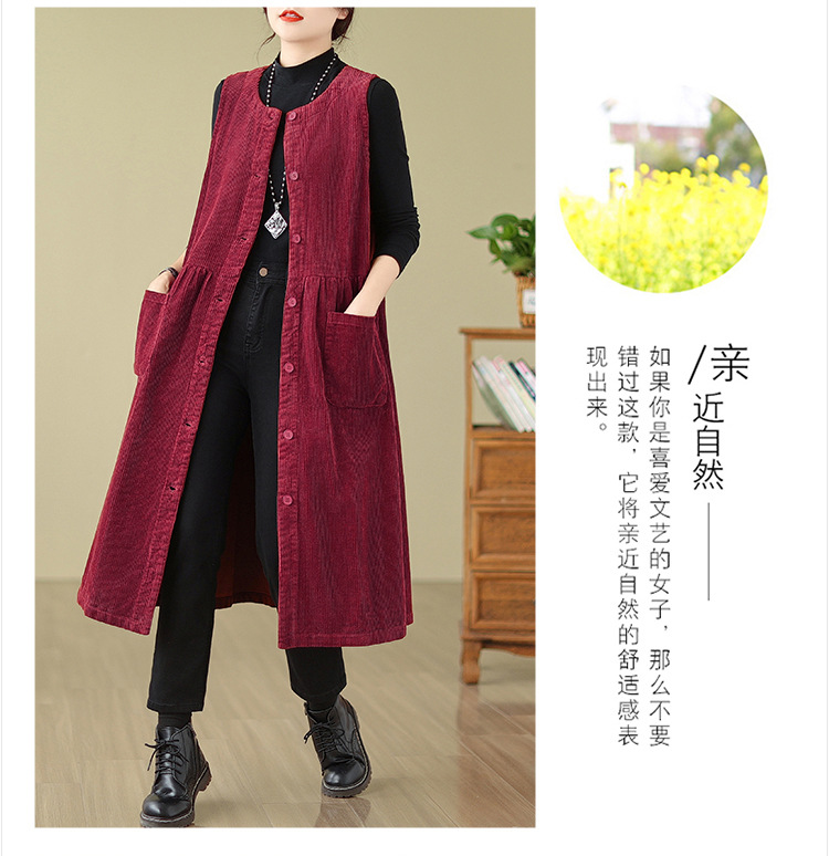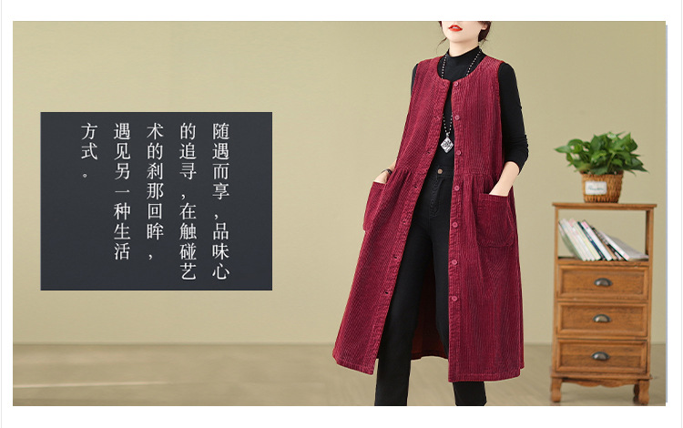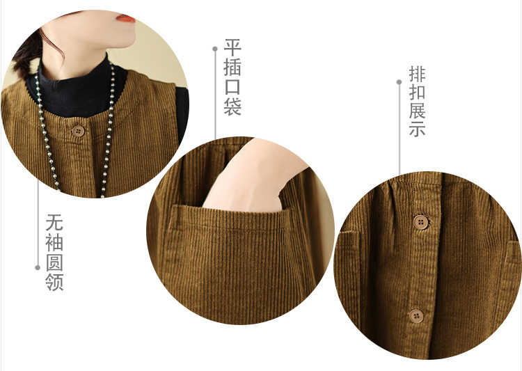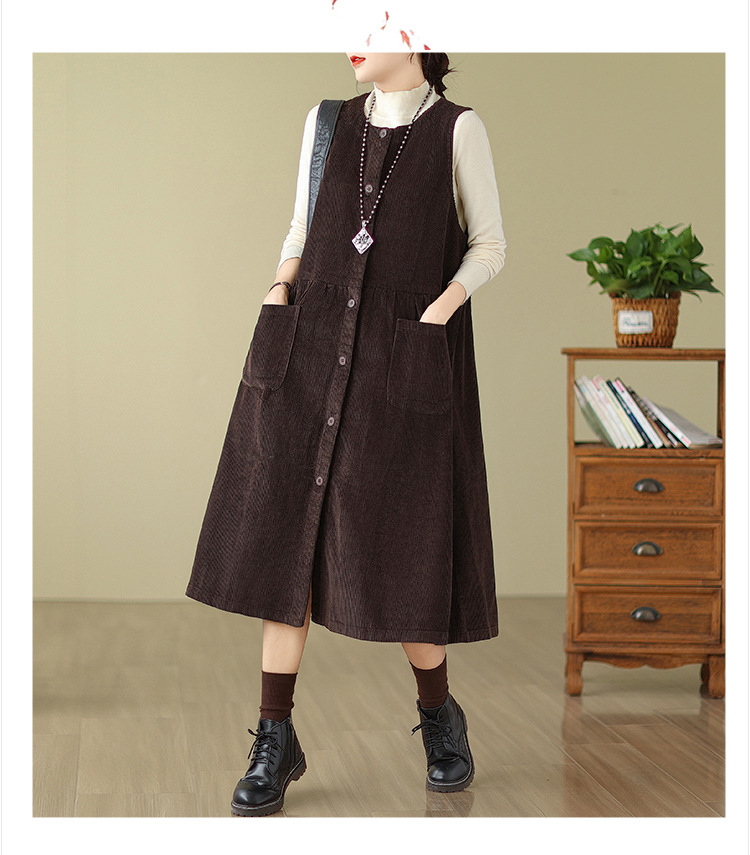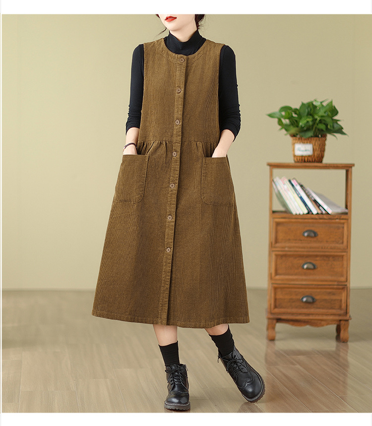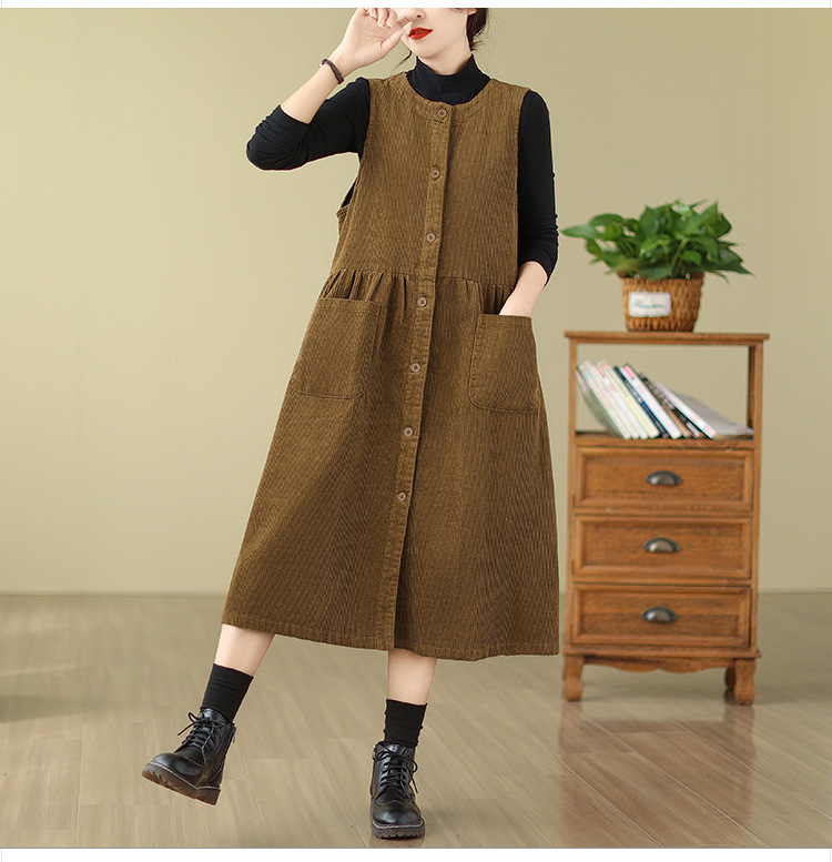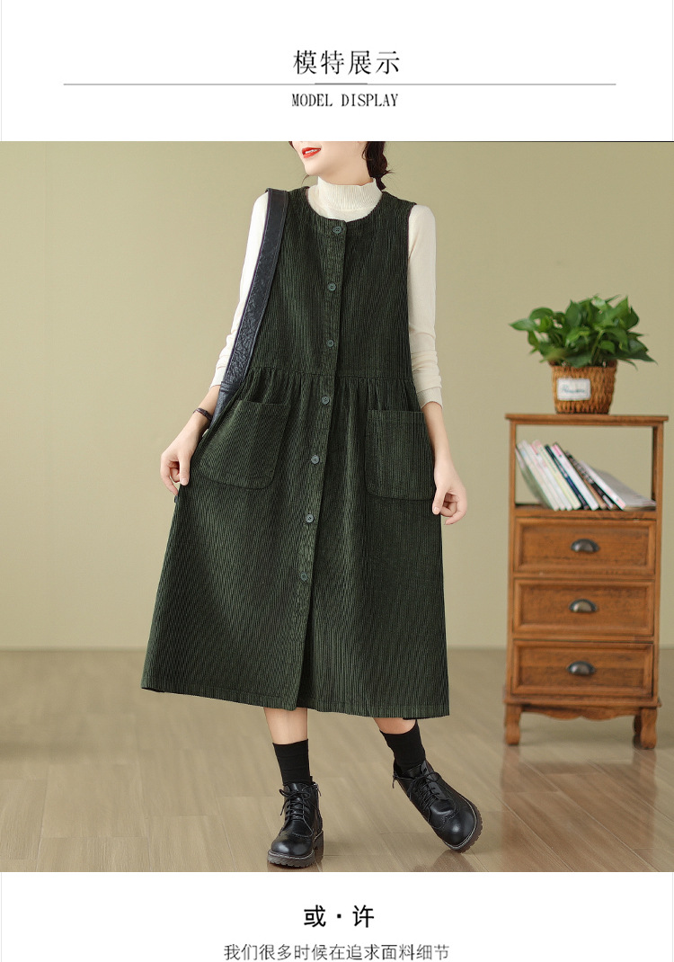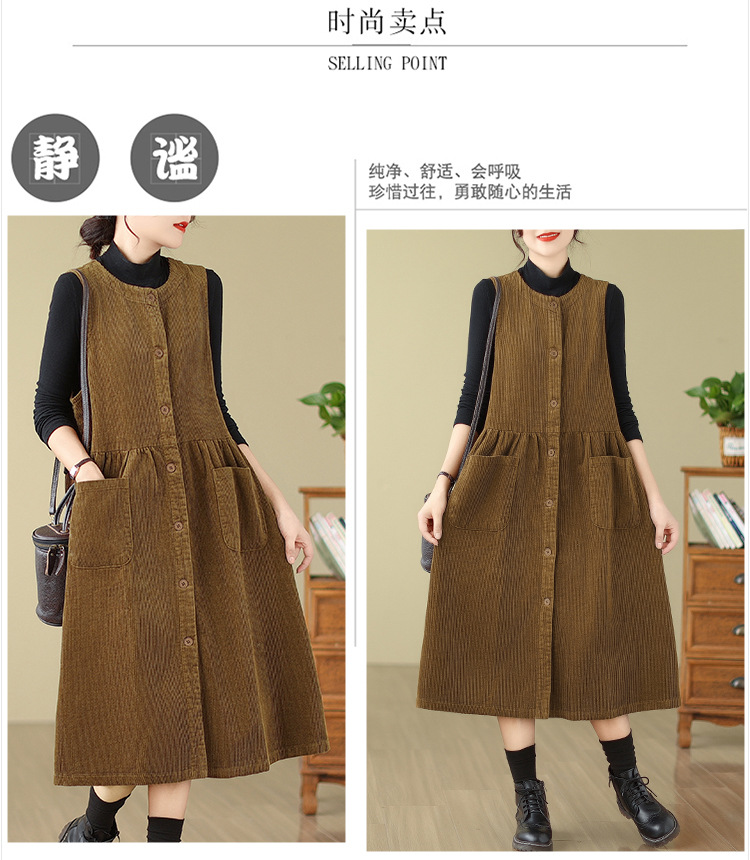 リアルショット 2025 秋冬ドレスコーデュロイベストドレスファッショナブルなルーズ年齢軽減高級婦人服