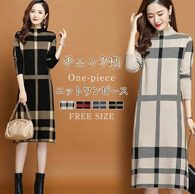 冬の日韓の新型日系の優雅な赫本の半高襟の透かし彫りの復古の毛のスカートの中の長いニットのワンピース