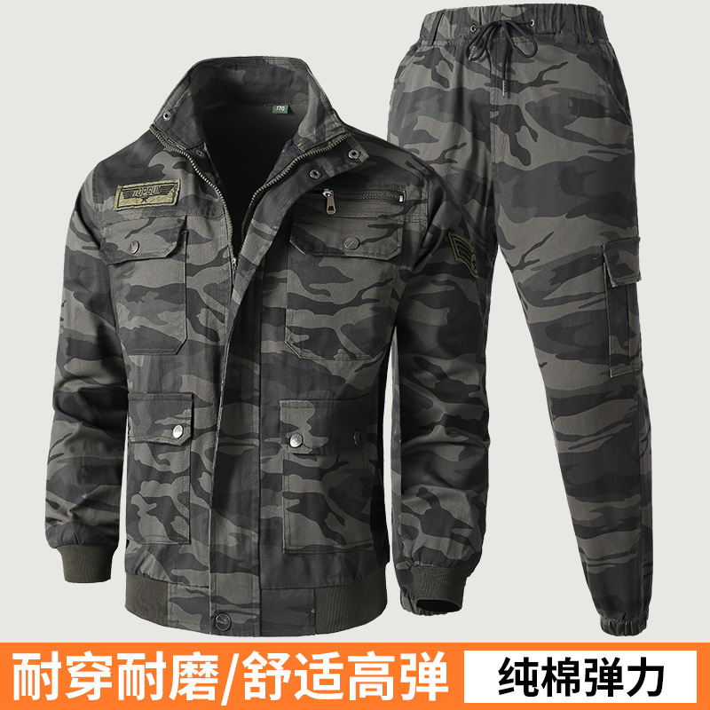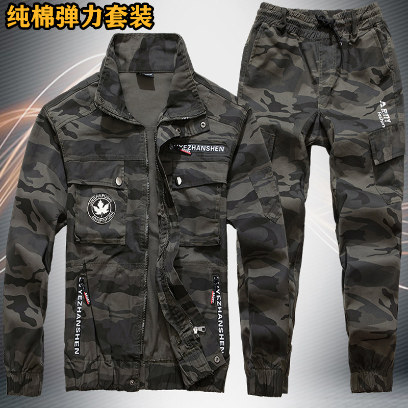 弾力作業服セット男性春秋純綿迷彩服機械修理電気溶接耐摩耗性工装汚れに強いトレーニング服工装