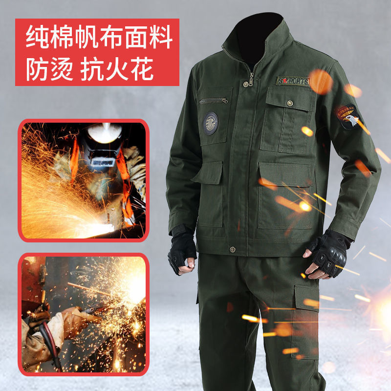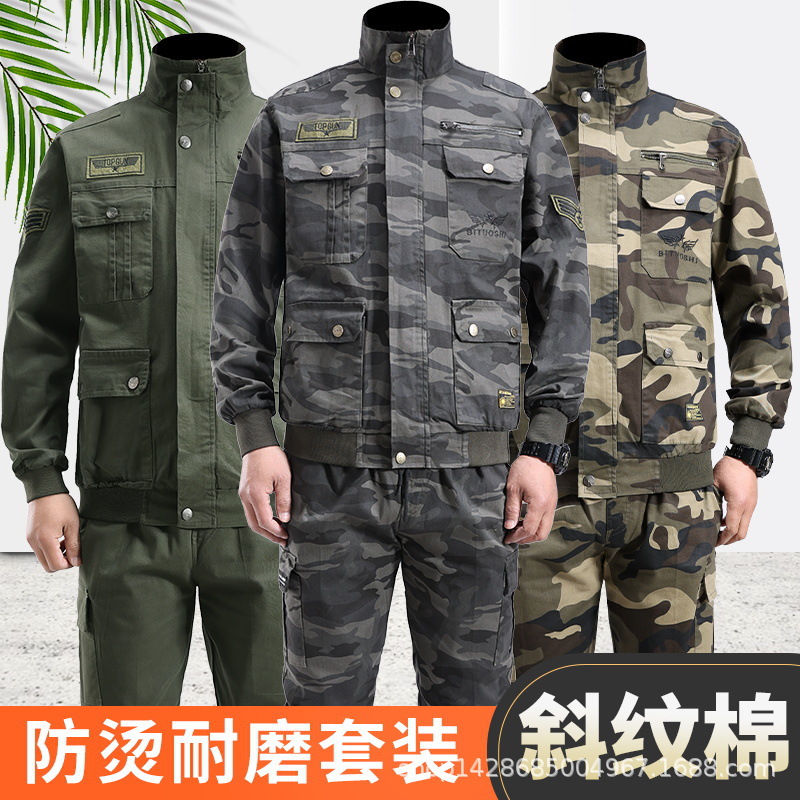 春秋作業服迷彩服セット電気溶接建築工事現場耐摩耗性汚れ内装自動車修理男性工装労働保険