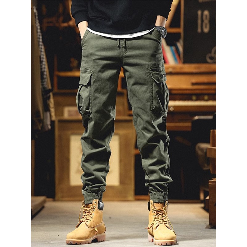 美式军绿色工装裤男宽松潮牌休闲裤男春秋束脚男士裤子多口袋户外