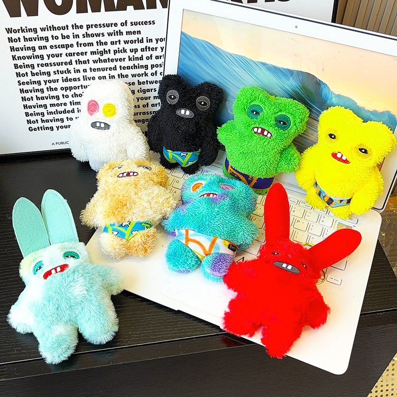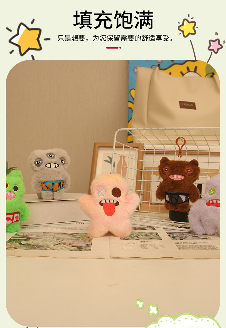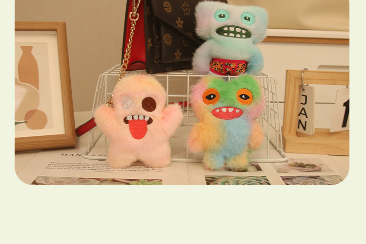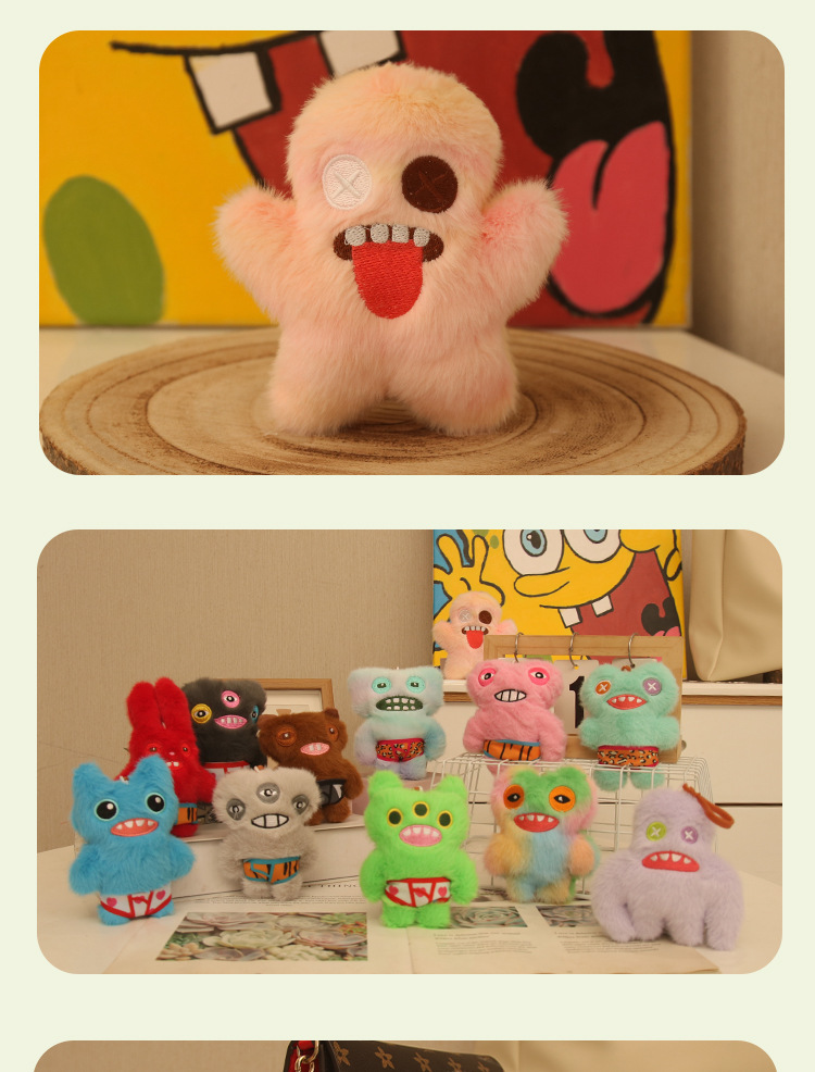 新款卡通大牙齿公仔搞怪毛绒小怪兽挂件丑萌怪物玩偶钥匙挂饰批货