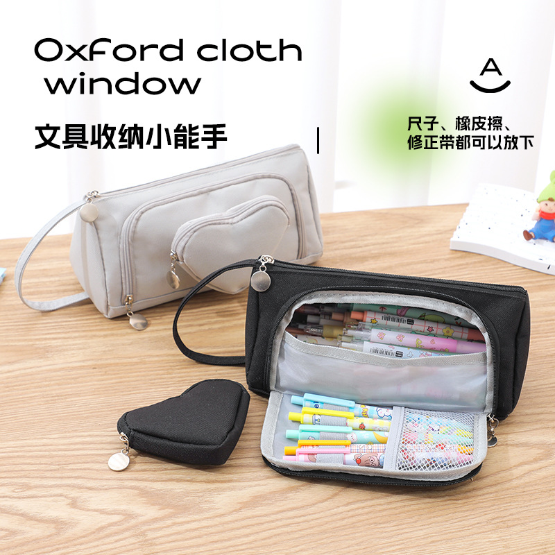 二重前に窓を開けたオックスフォード布の筆袋は大容量でシンプルな日系高颜値学生の手提げ文房具袋卸売りです。