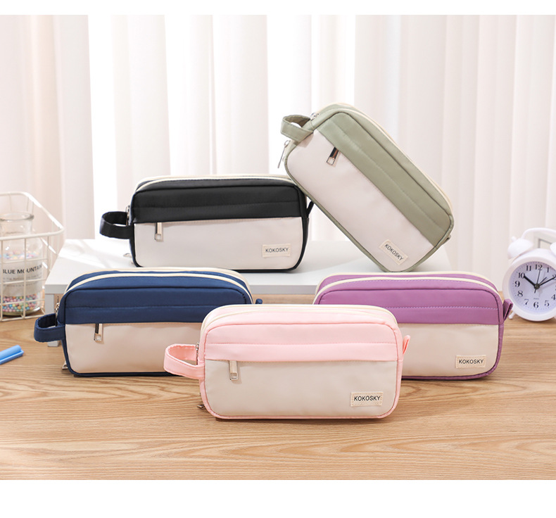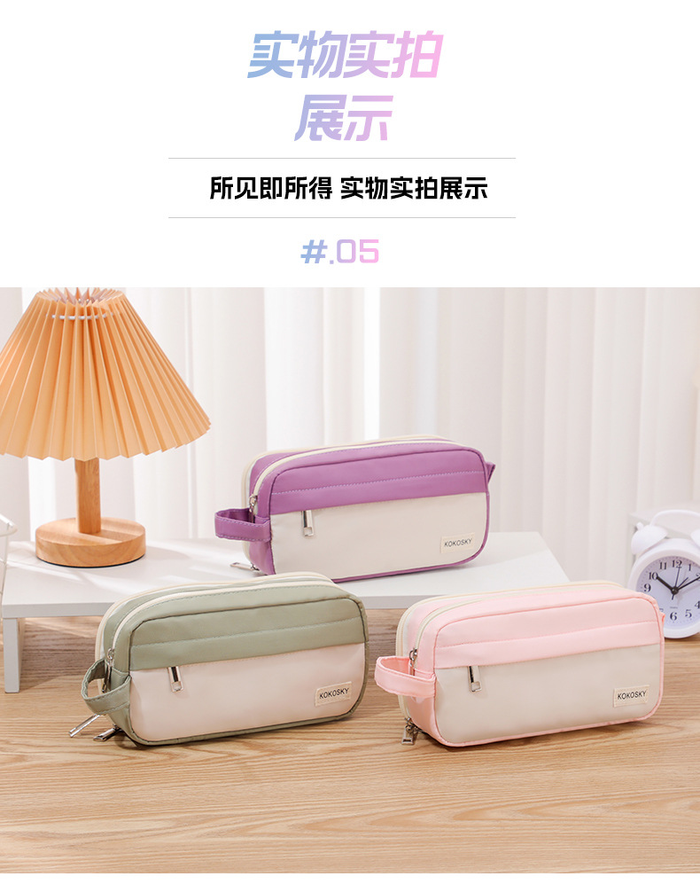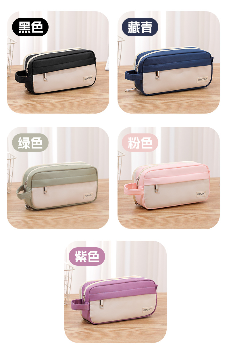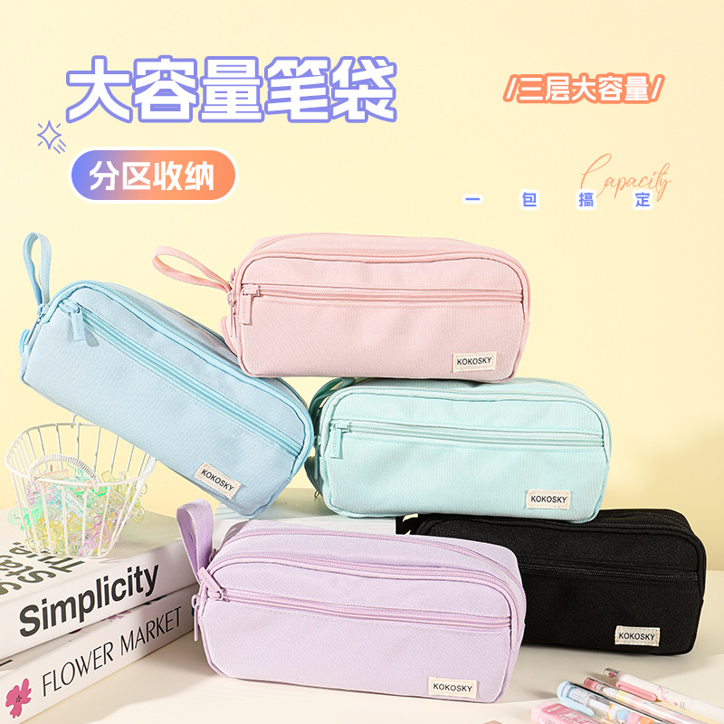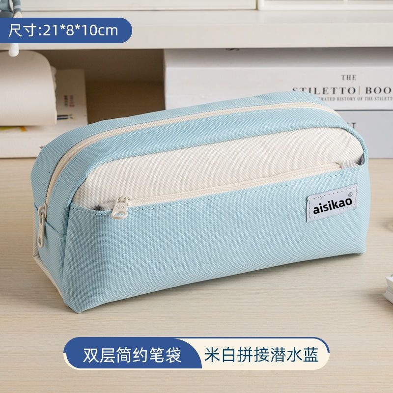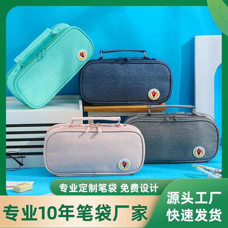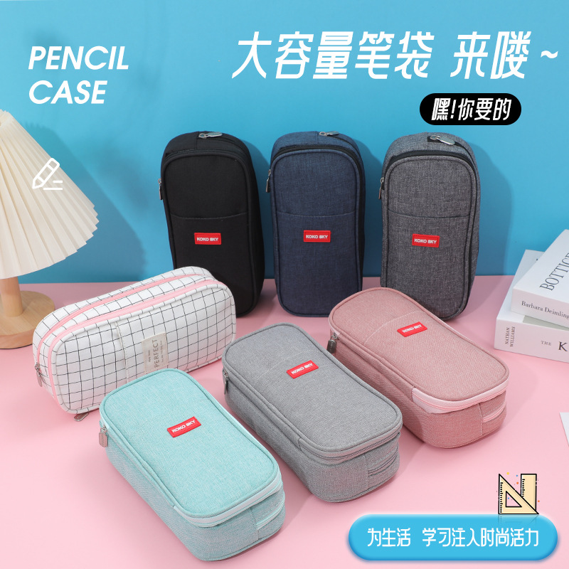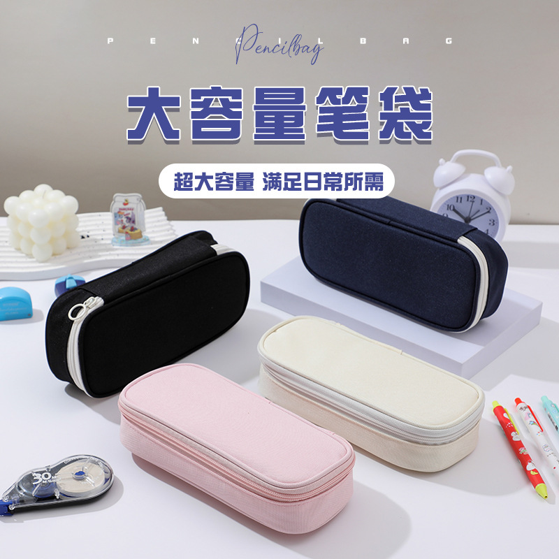 韓国版高颜値筆袋大容量中学生文房具箱クロスボーダー二重帆布シンプル純色文房具袋