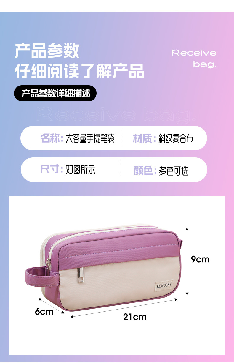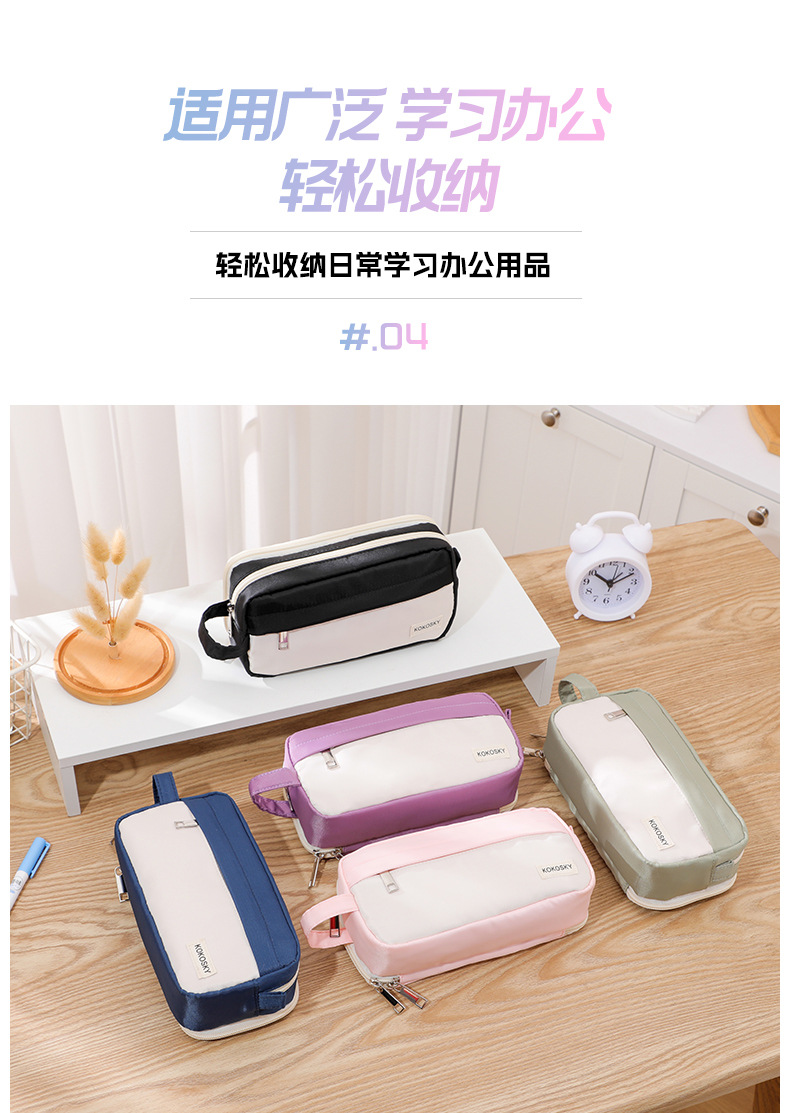 跨境新款手提笔袋双层文具袋大容量简约多功能笔袋男女通用