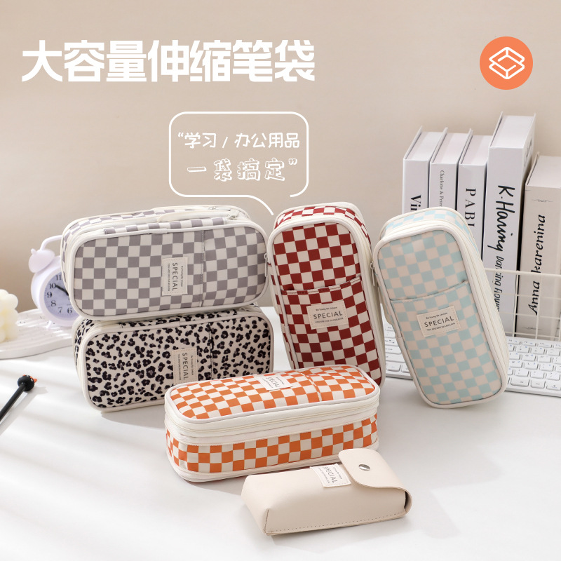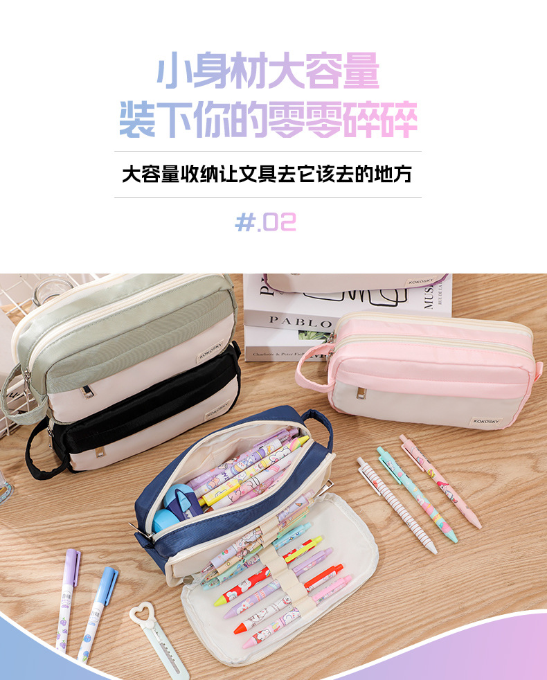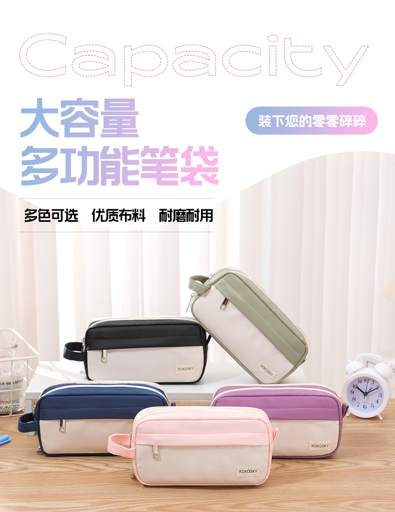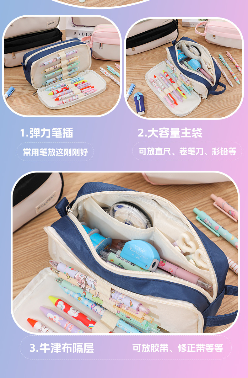 新しい二層大容量高颜値ins風筆袋オックスフォード布汚れに強い学生事務用品文房具箱