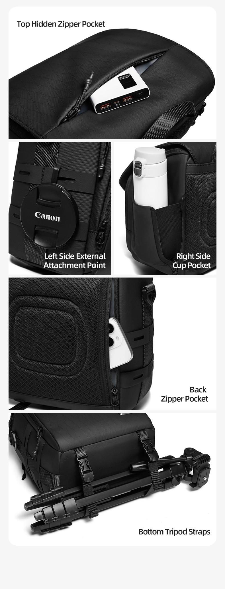 Cwatcun 香港一眼レフカメラバッグ大容量ショルダー多機能カメラバッグクロスボーダー屋外写真バックパック
