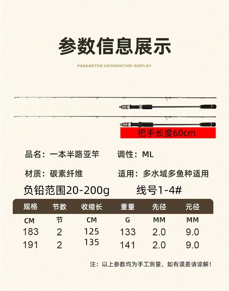 慢摇铁板竿近海船杆一本半鱿鱼路亚竿插节1.83 米1.9米高灵敏直柄