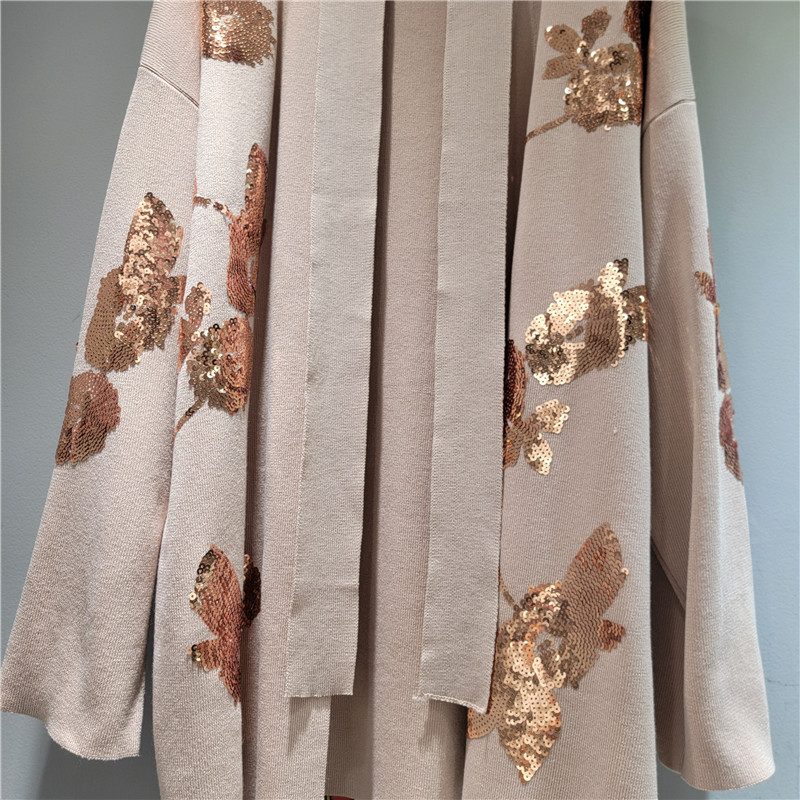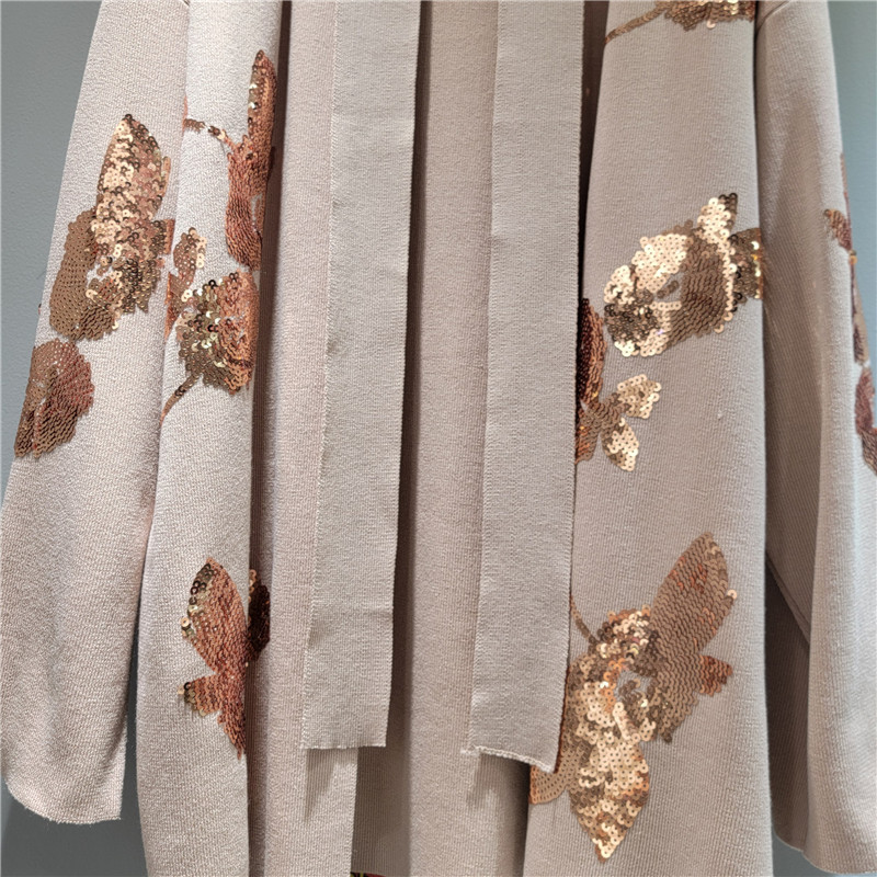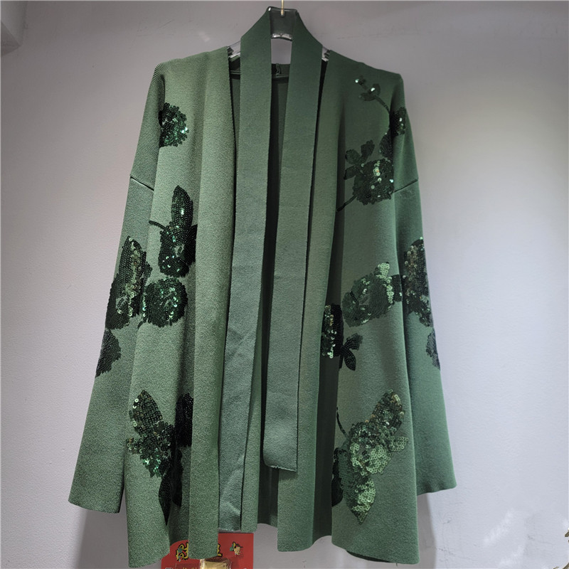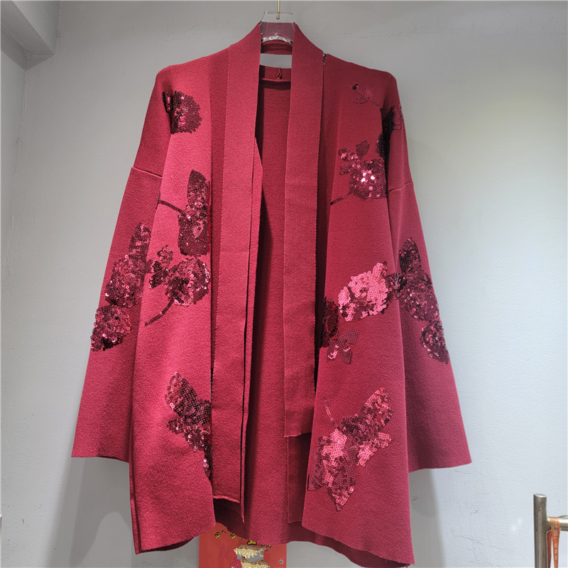 重工亮片立体绣花中长款长袖针织开衫女秋季新款时尚花朵毛衣外套