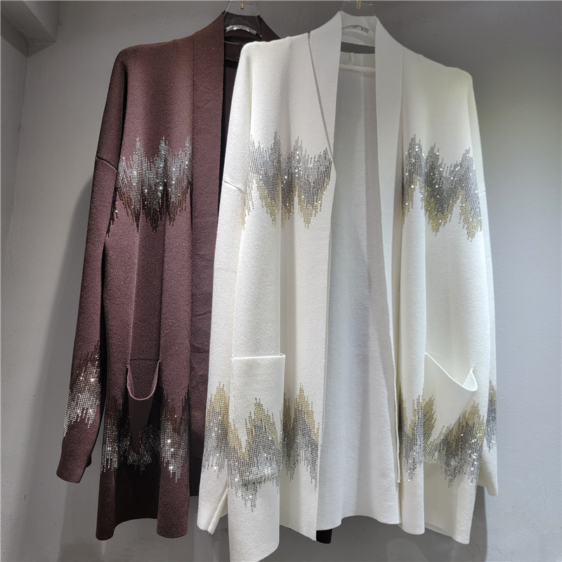 设计感珠片刺绣中长款细线针织开衫毛衣外套显瘦2025新款女