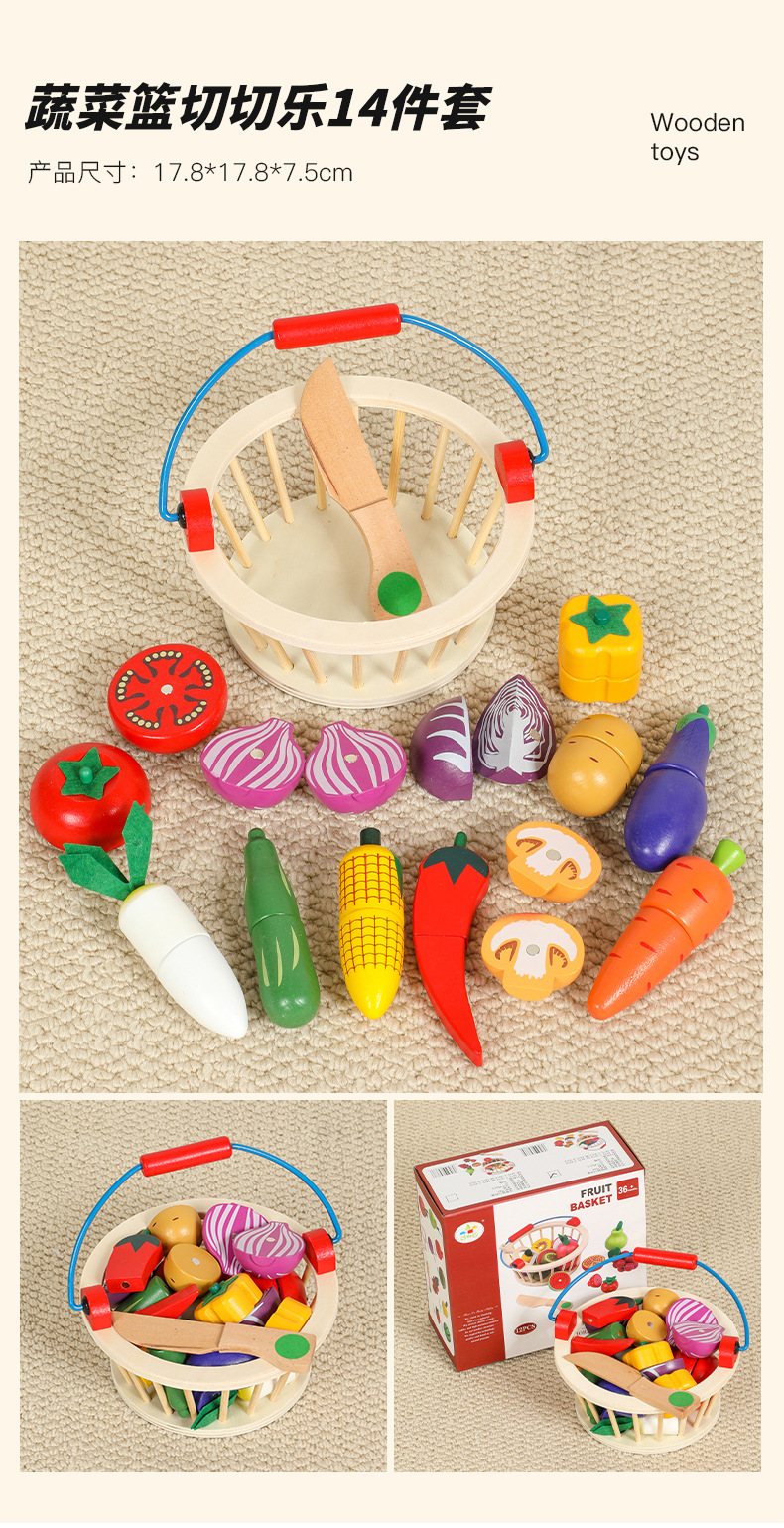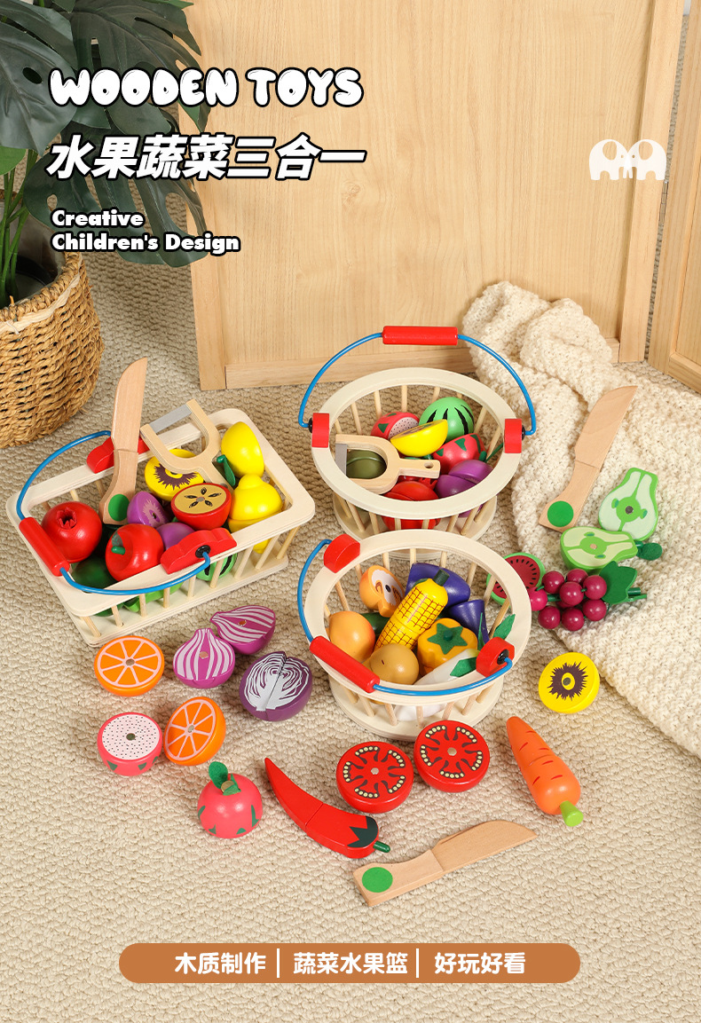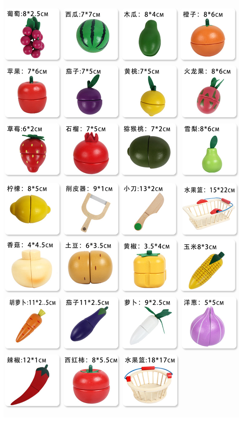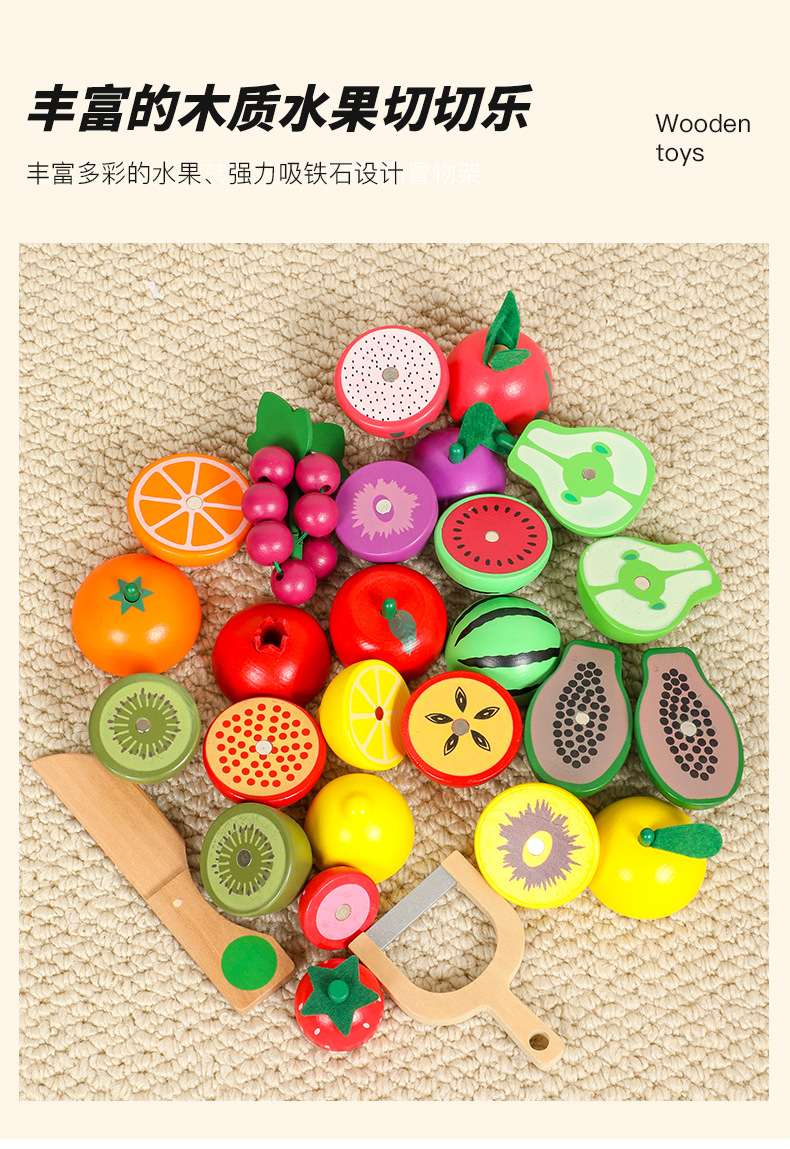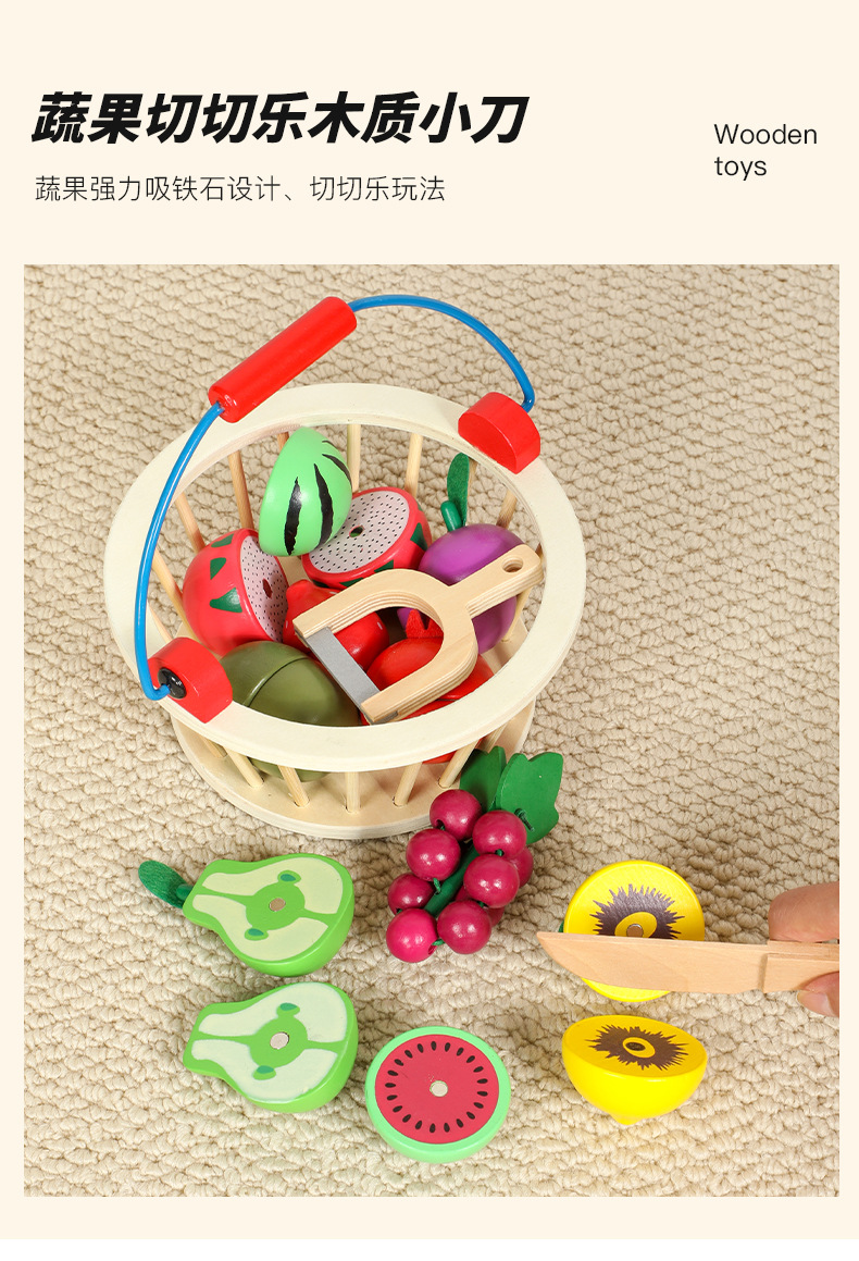 儿童切切乐仿真水果过家家磁性木质桶装厨房训练幼儿益智木制玩具