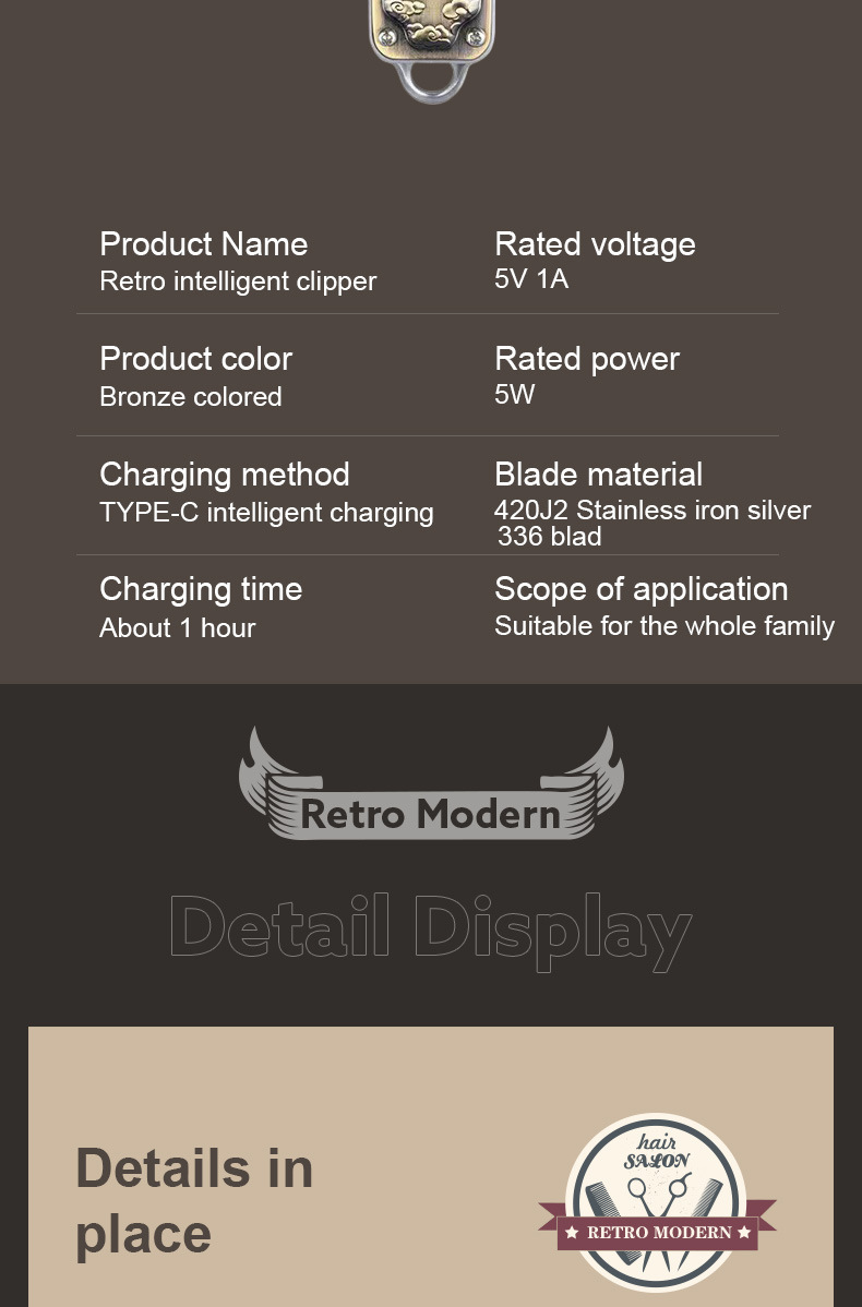 跨境复古雕刻电推子发型师美发专业剃头理发器男士油头修边电推剪