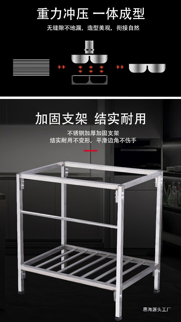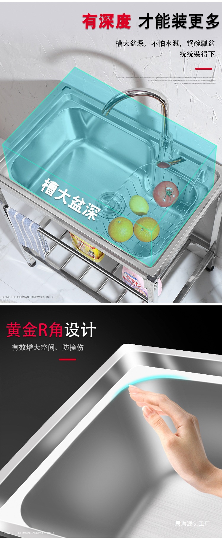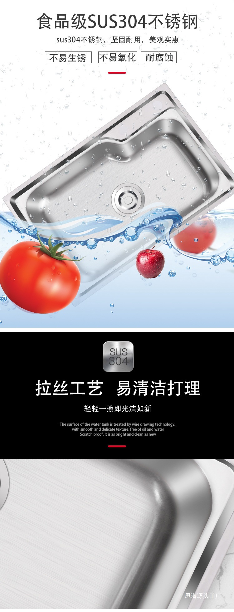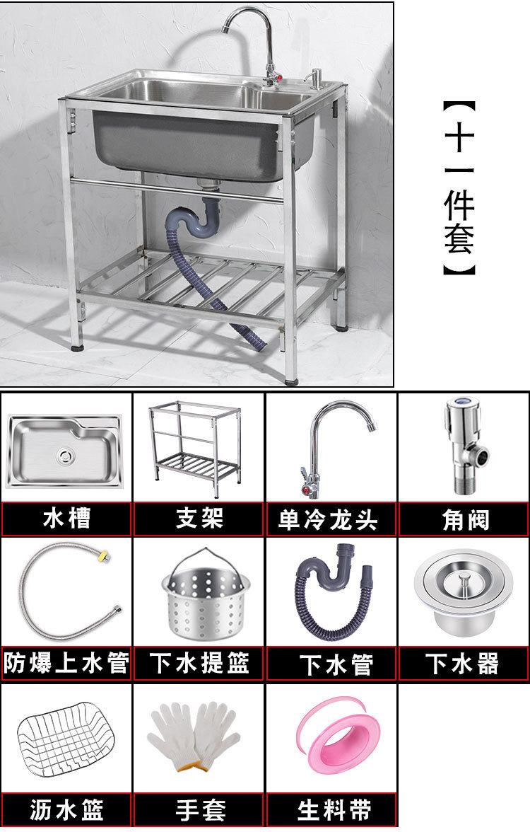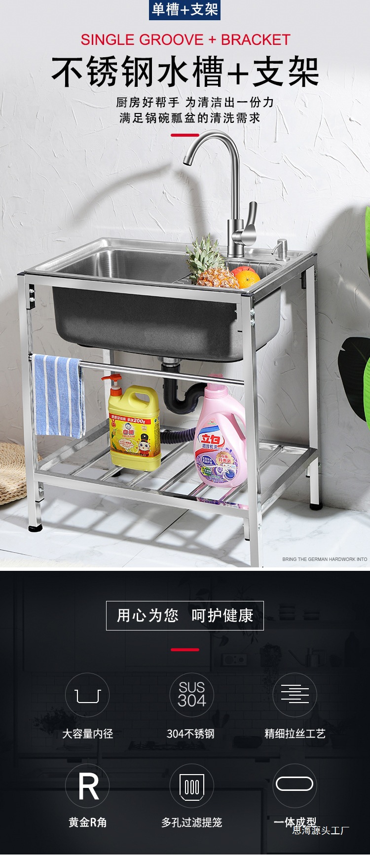 厨房J加厚简易304不锈钢水槽大单槽双槽带支架洗菜盆洗碗池洗