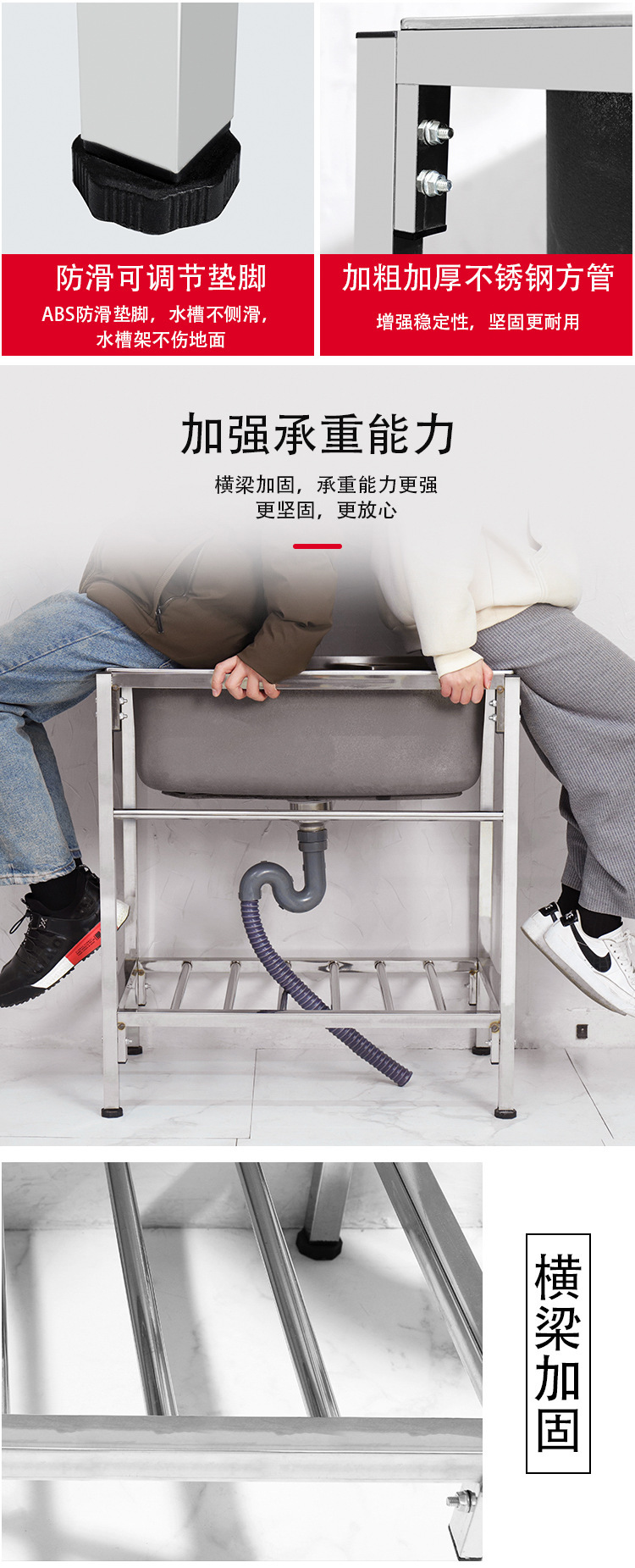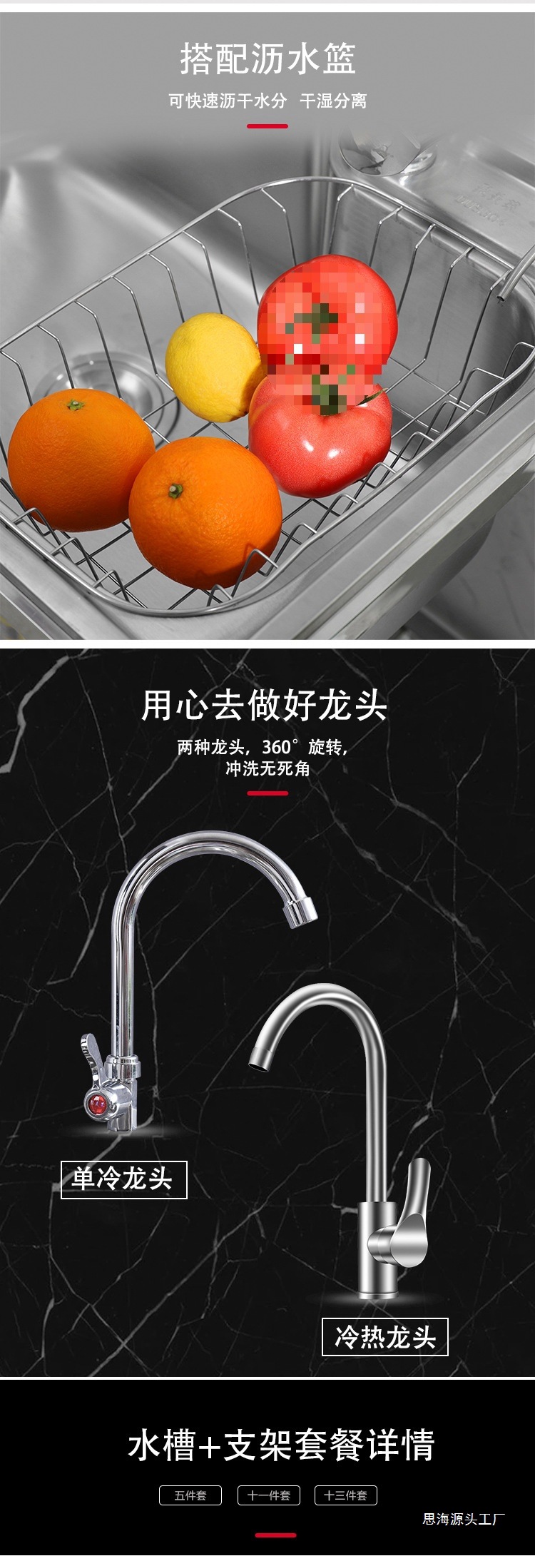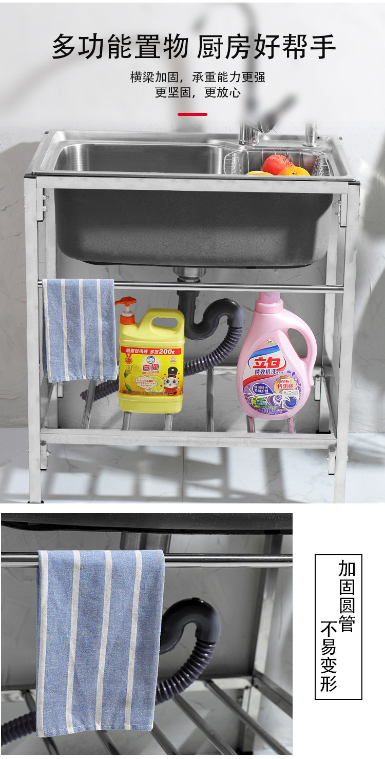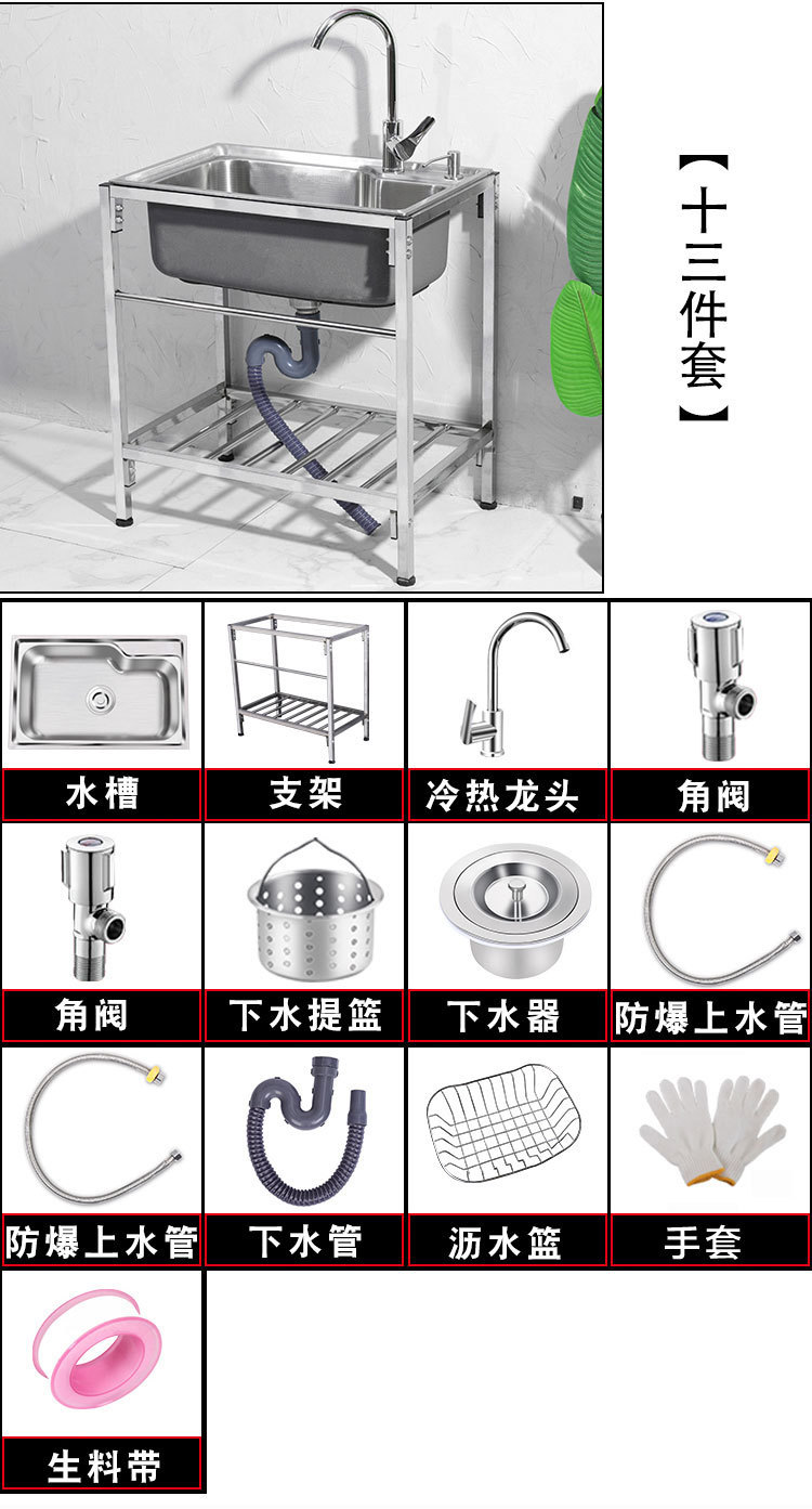 厨房J加厚简易304不锈钢水槽大单槽双槽带支架洗菜盆洗碗池洗