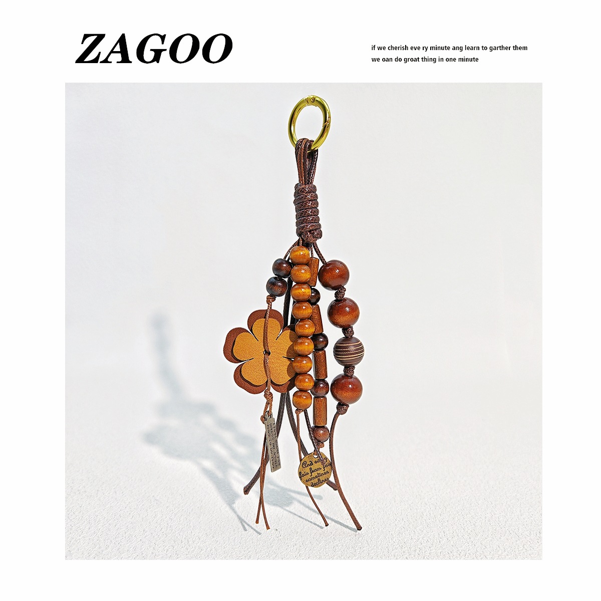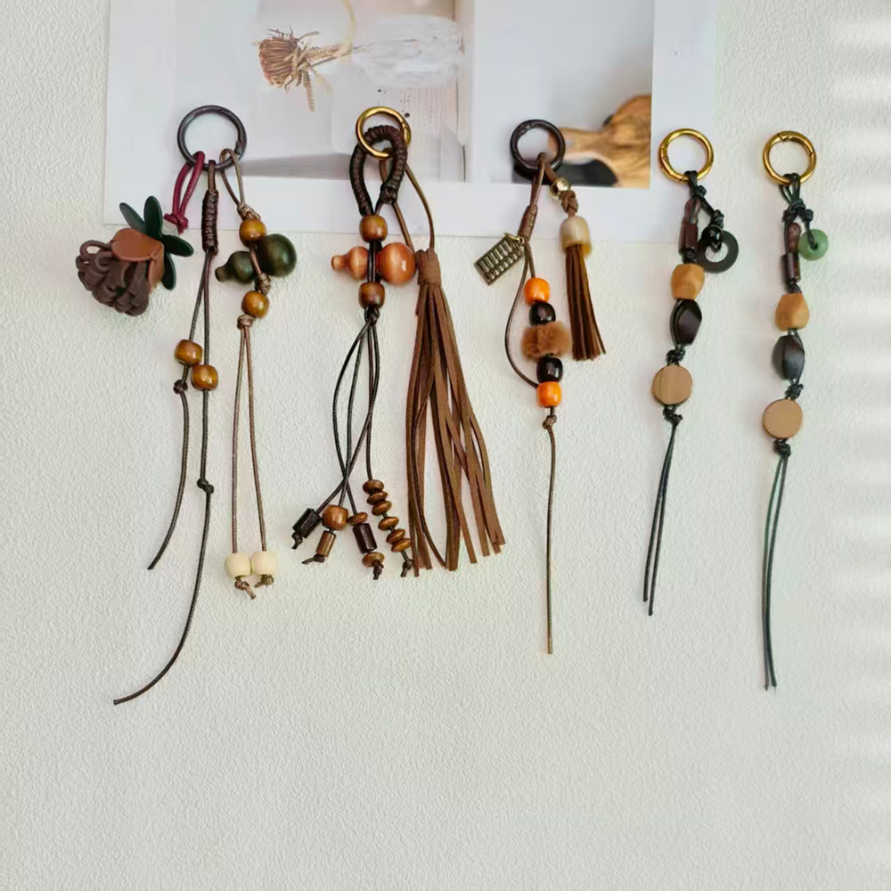 创意复古休闲百搭手工串珠包挂件波西米亚木珠树脂珠流苏编绳挂饰