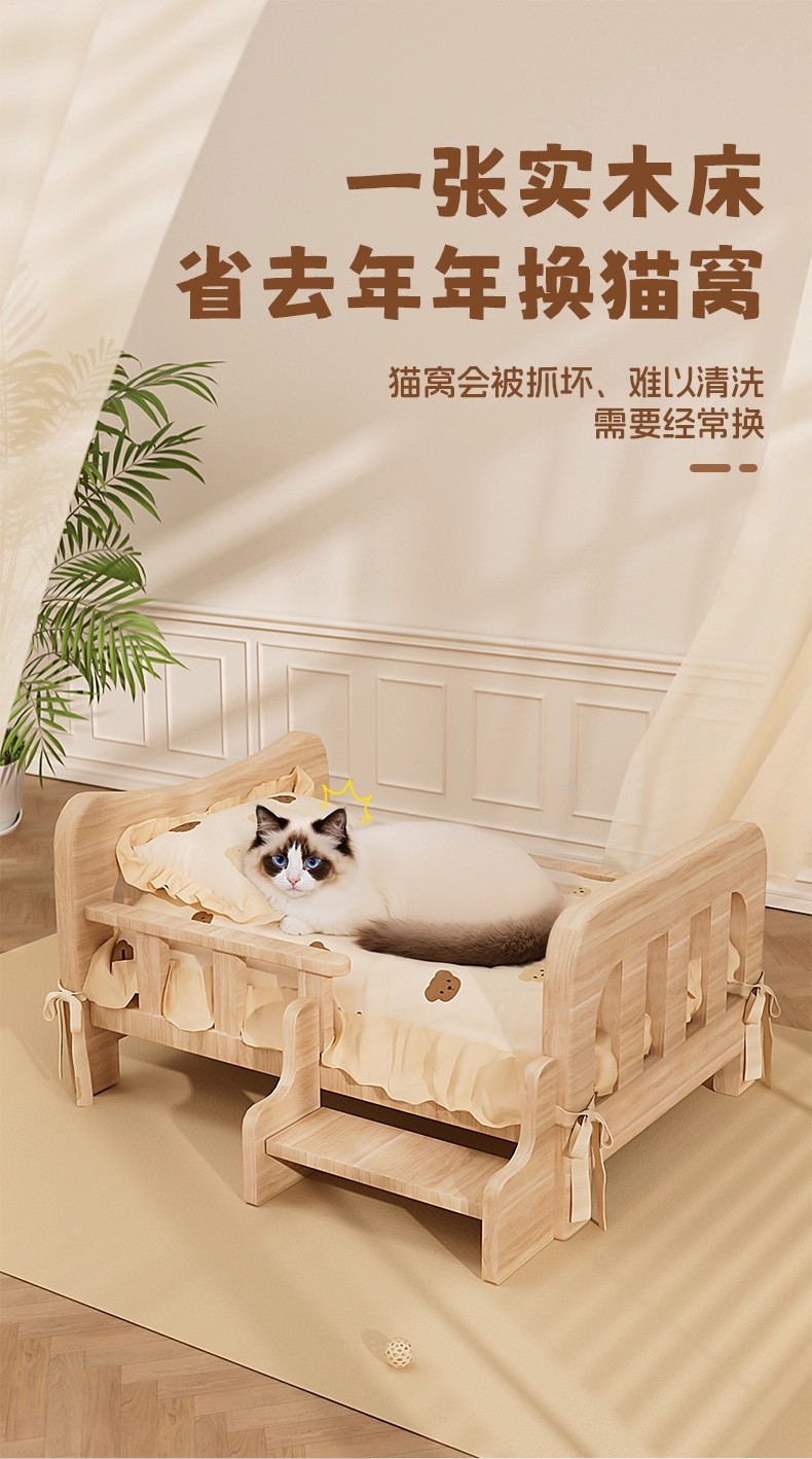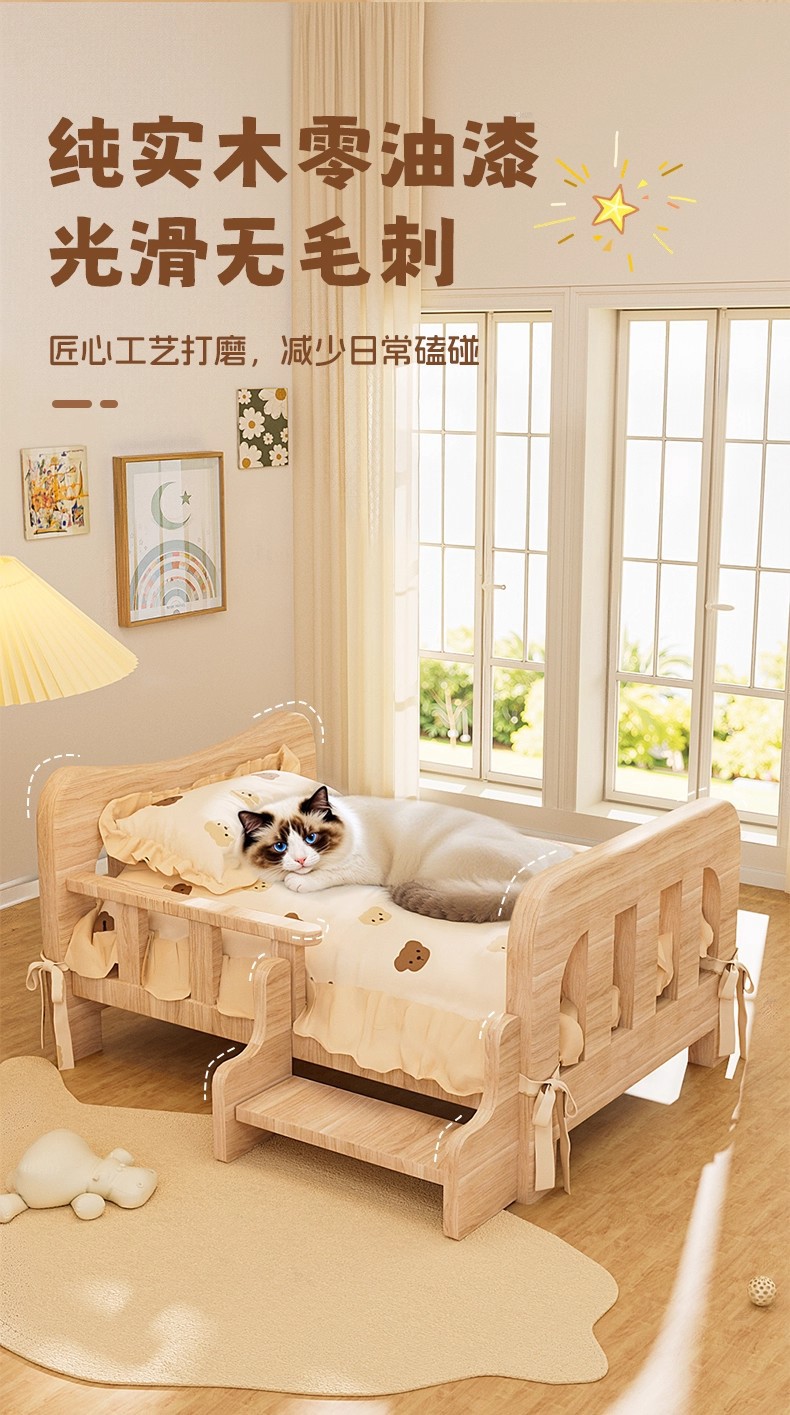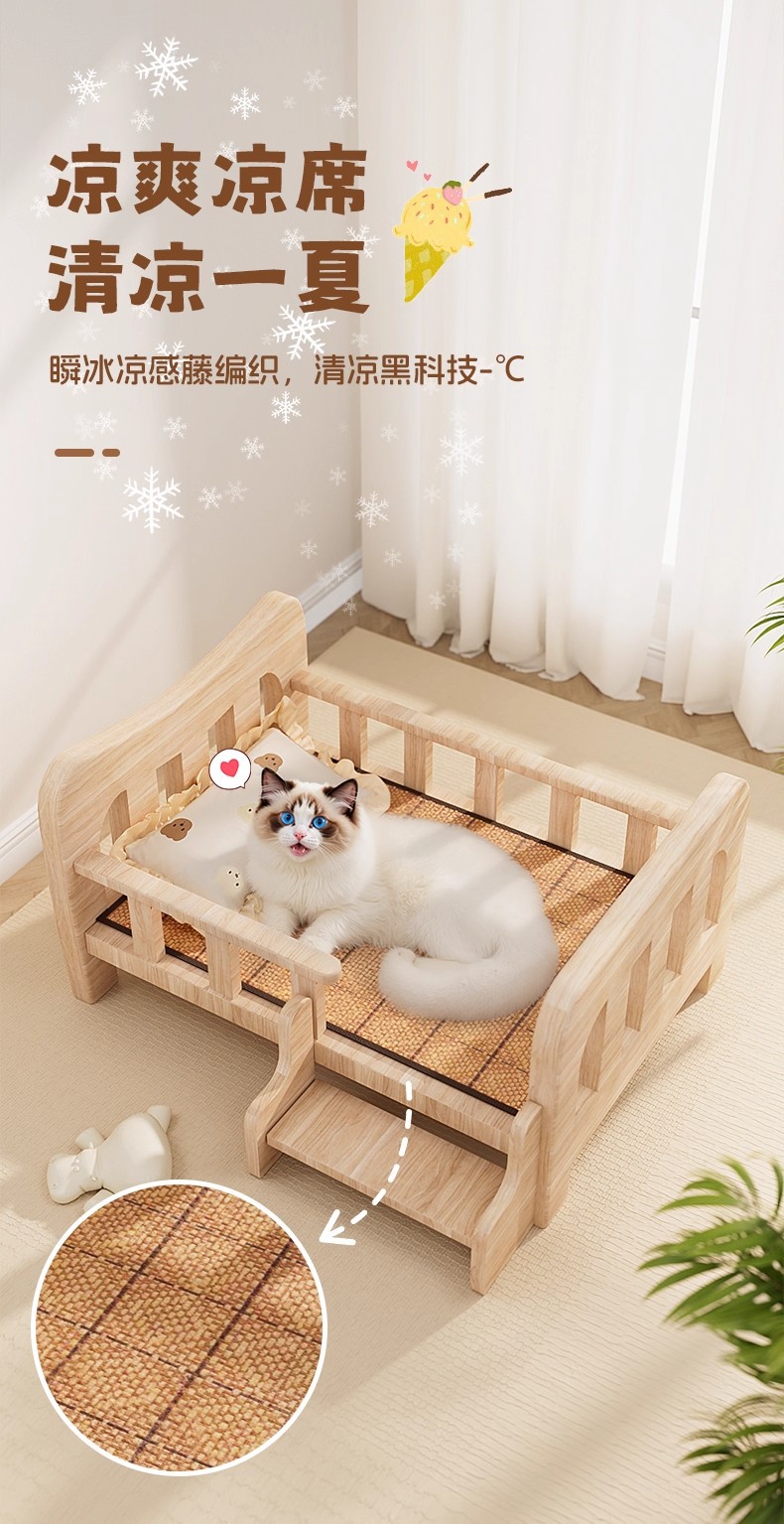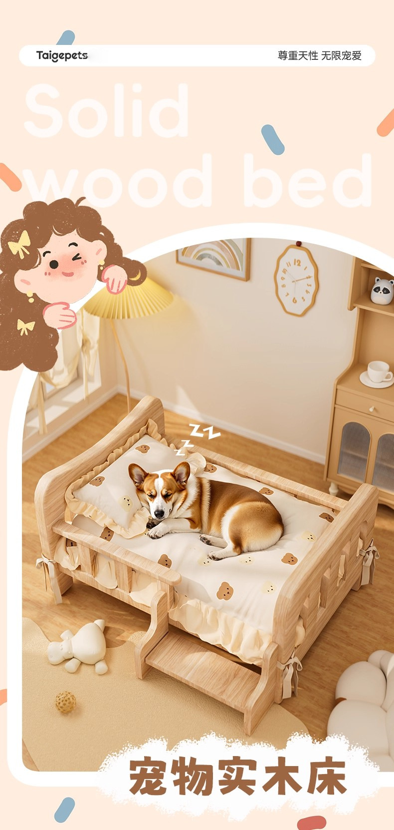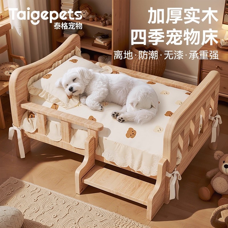 全实木狗床狗窝离地四季通用猫咪宠物大中小型犬泰迪比熊柯基睡觉
