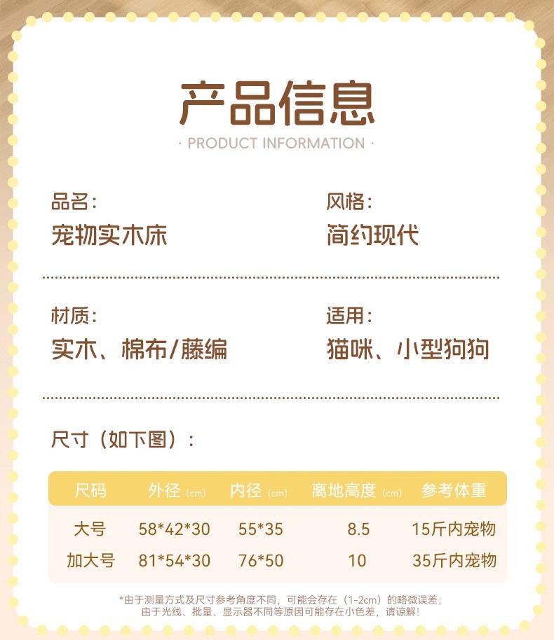 规格 【大号】实木床【适用15斤内宠物】,【大号】实木床+夏季凉席【适用15斤内宠物】,【大号】实木床+冬季床品两件套【适用15斤内宠物】,【大号】实木床+冬季床品+凉席【适用15斤内宠物】,大号小熊床品,【加大号】实木床【适用35斤内宠物】,【加大号】实木床+夏季凉席【适用35斤内宠物】,【加大号】实木床+冬季床品两件套【适用35斤内宠物】,【加大号】实木床+冬季床品+凉席【适用35斤内宠物】,加大号小熊床品