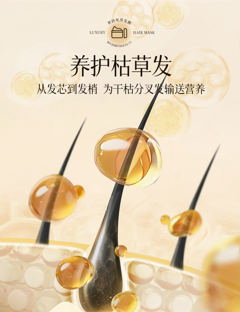魚子カスタードヘアマスク、植物性パーマ・カラーリング後のダメージ補修、蒸し不要のオイルクリーム、乾燥・ダメージヘアの補修と保湿、ヘアコンディショナー、卸売、理髪店向け