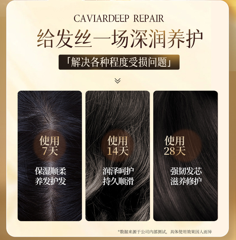 キャビアの髪膜を修理して、乾燥した毛を染めて、水を補います。
