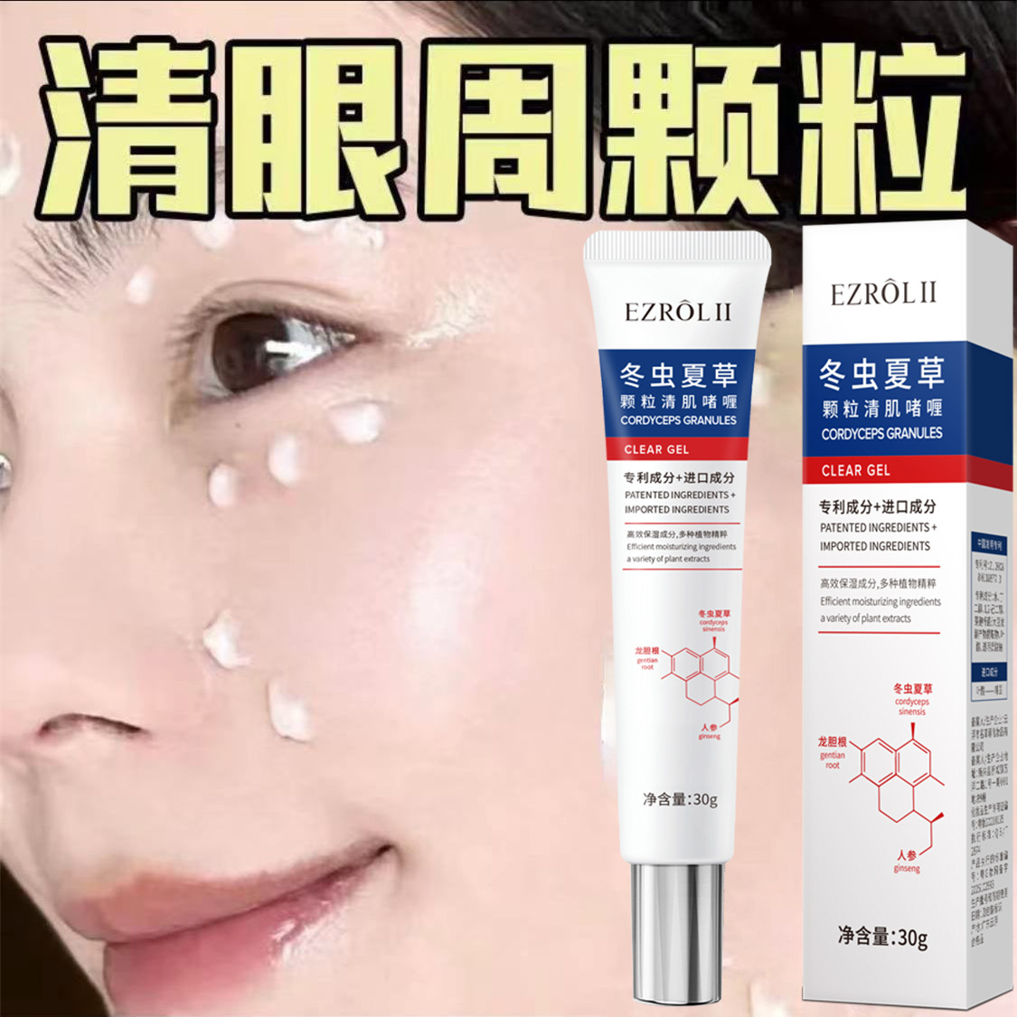 Yizilu 冬虫夏草顆粒肌浄化ジェルさわやかでベタつかない脂肪粒子目の隅ケアアイクリーム