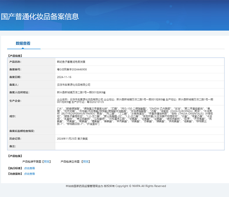 生产许可证号 粤妆20210135