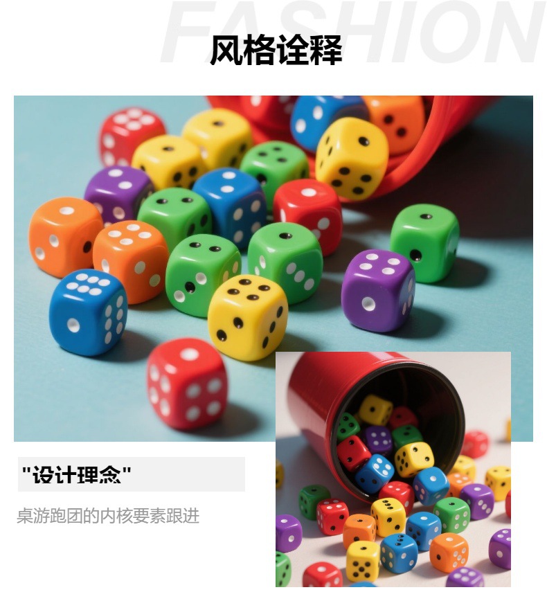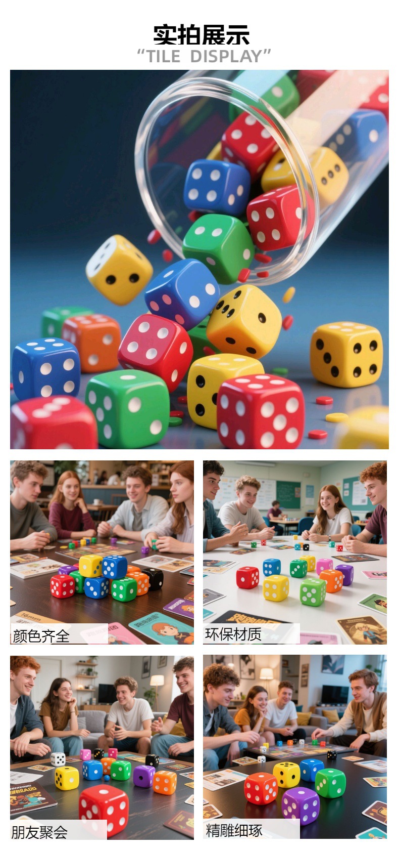 骰子拥有多种色彩可选,涵盖了清新的浅色系与浓郁的深色系,满足不同玩家的个性化审美需求。无论是热情似火的红色,代表希望与生机的绿色,还是神秘深邃的蓝色、浪漫甜美的粉色等,丰富色彩不仅为游戏增添了趣味性,还能在一些特定桌游或教学场景中,通过颜色区分不同功能或阵营,让游戏规则更加清晰明了。