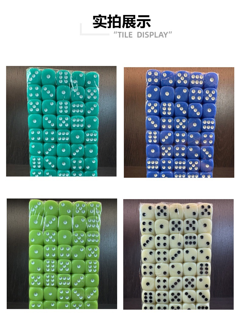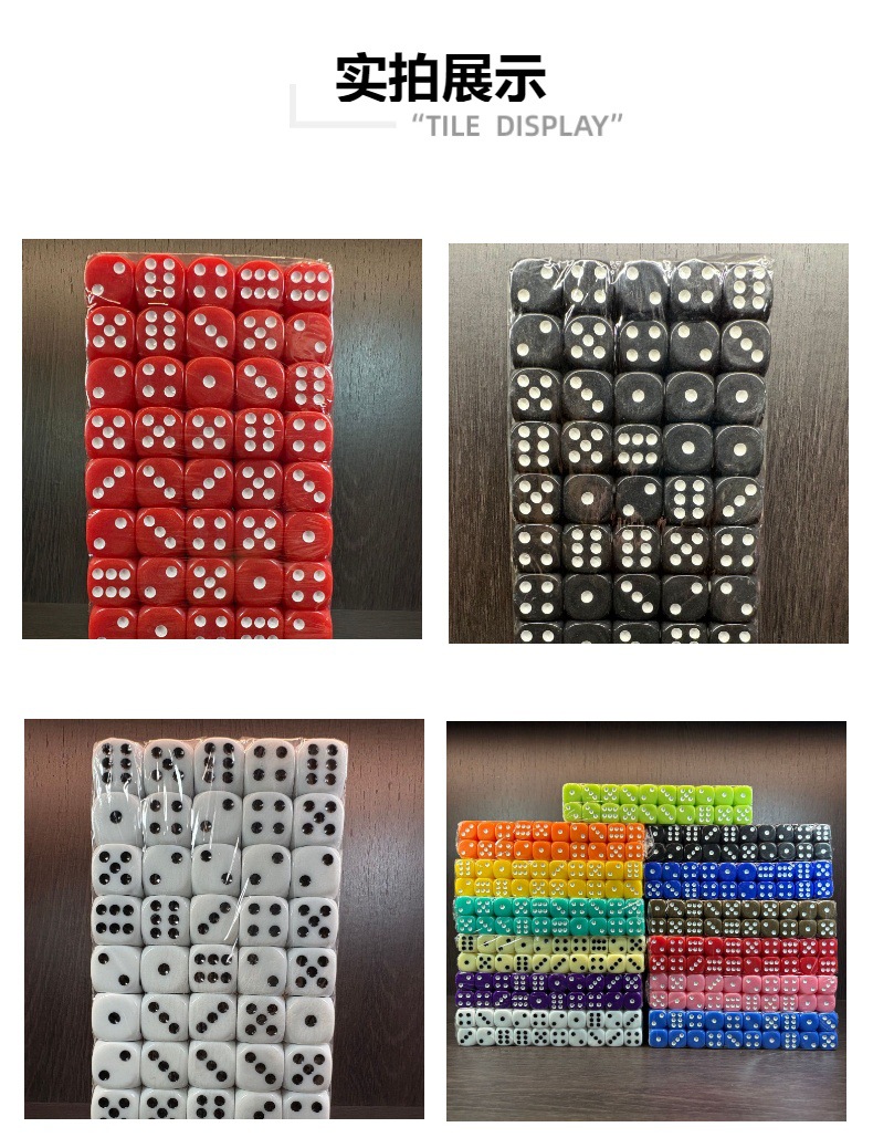 16mm 的尺寸经过精心设计,既方便玩家轻松拿捏,又确保了投掷时的稳定性和随机性。规则的六面体形状,每一面都严格校准,保证了在游戏过程中,每一次投掷结果都公平公正,让您全身心投入到紧张刺激的游戏策略制定中,无需担忧骰子本身的偏差影响游戏走向。