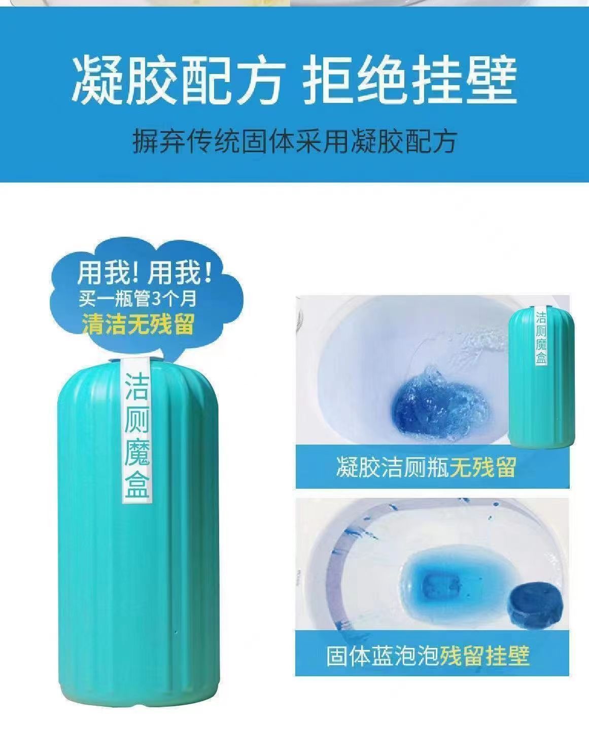 洁厕魔盒 厂家直销家用清香型洁厕凝胶马桶除臭去异味蓝泡泡魔瓶