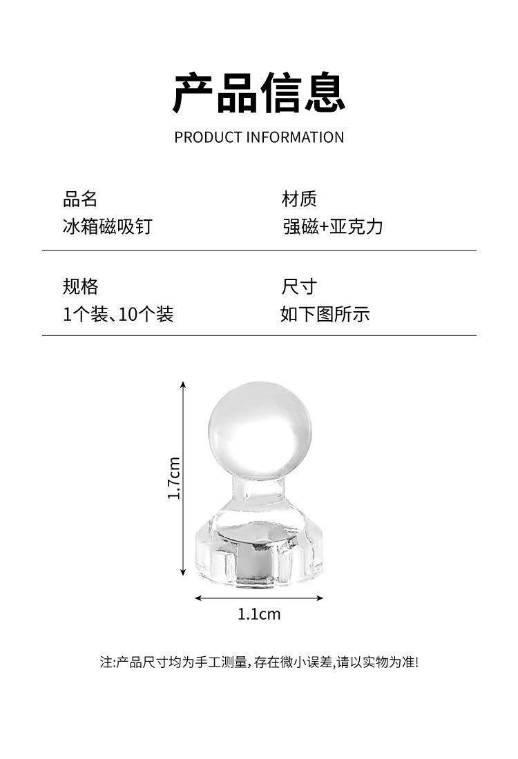 透明强磁图钉冰箱贴贴亚克力磁性黑板报照片图画固定贴冰箱留言贴