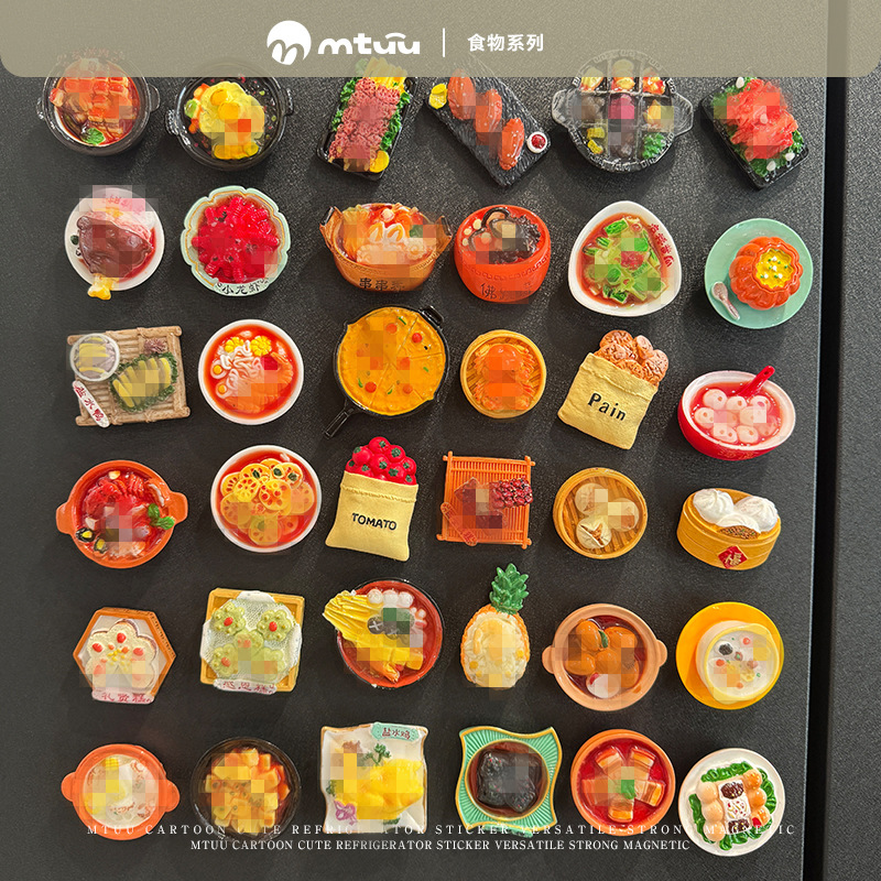 模擬樹脂食品おもちゃ冷蔵庫ステッカー三次元クリエイティブ磁気ステッカー漫画食品メッセージステッカー冷蔵庫装飾磁気ステッカー