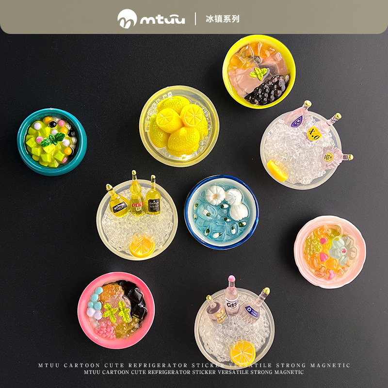 新しい冷蔵庫ステッカーフルーツデザートアイスパウダーシミュレーションアイスパーソナライズされた磁気ステッカークリエイティブホーム家具装飾卸売