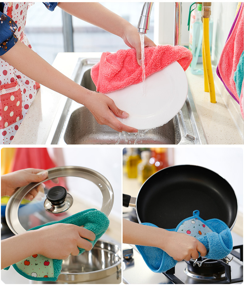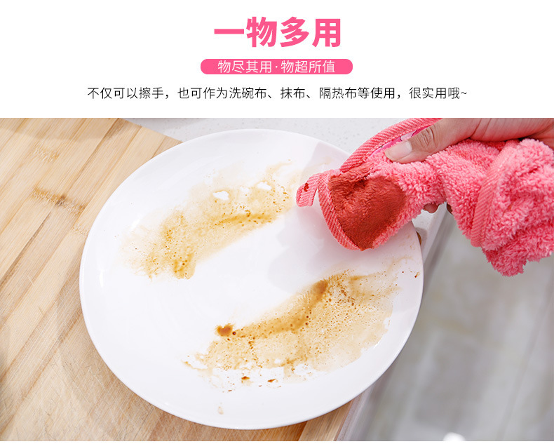 创意卡通挂式擦手巾超强吸水珊瑚绒加厚擦手布厨房抹布洗碗布毛巾