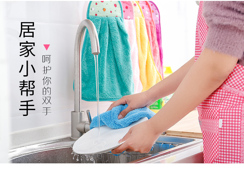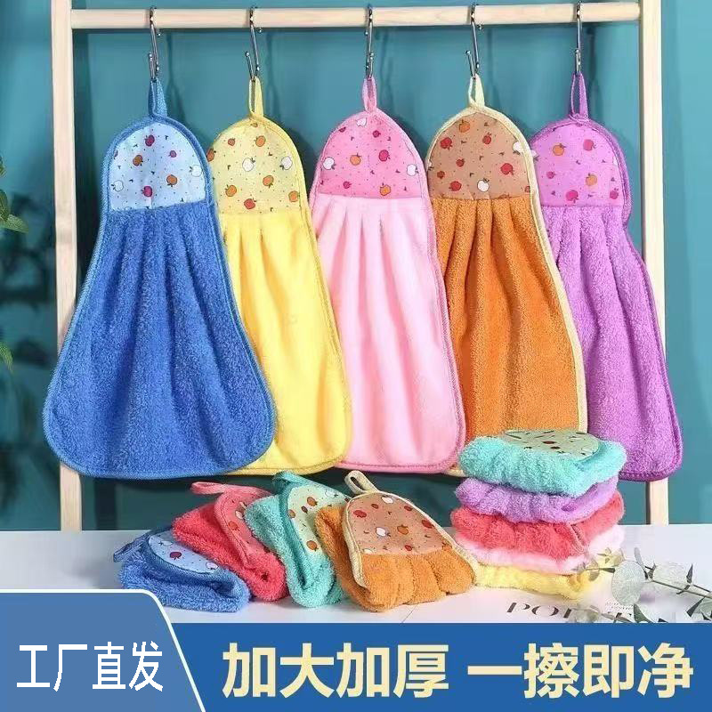 珊瑚绒挂式擦手巾加大加厚抹布超强吸水性厨房洗碗布卫生间擦手布