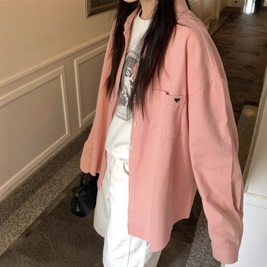 韓国系の愛の小衆のデザイン感の純色のシャツの女性2025春の新型のカジュアルでシンプルな百合のゆったりした上着