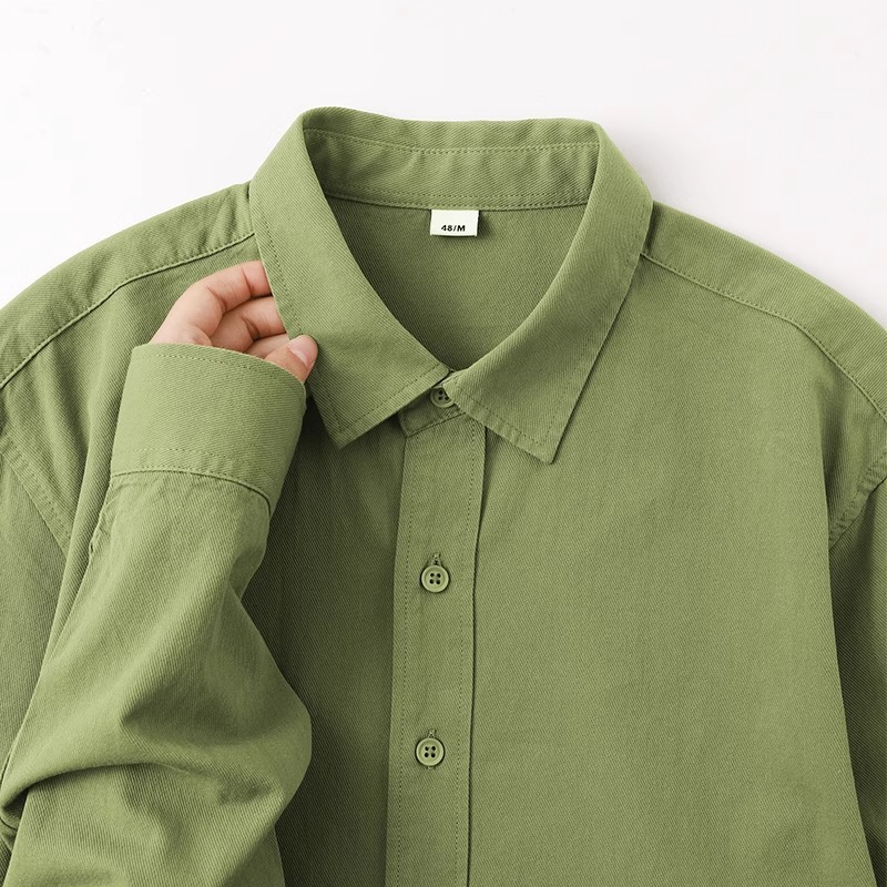 2024新型春装水洗綿日系牛油果緑襟長袖シャツシンプルカジュアル上着