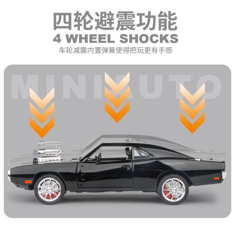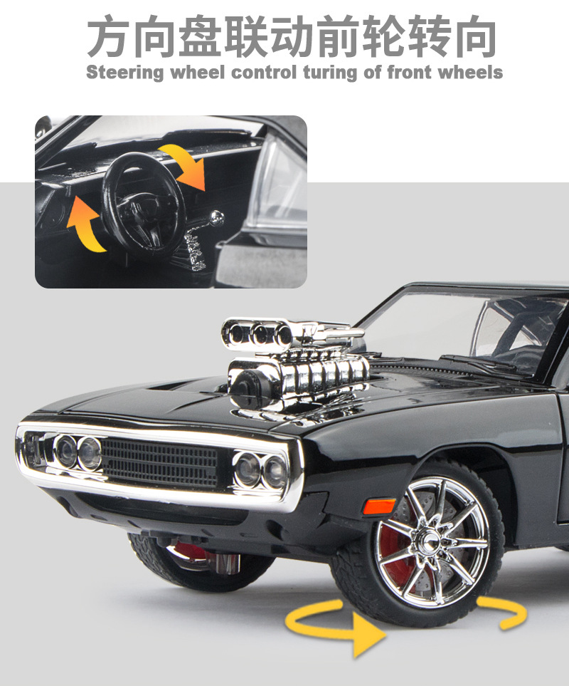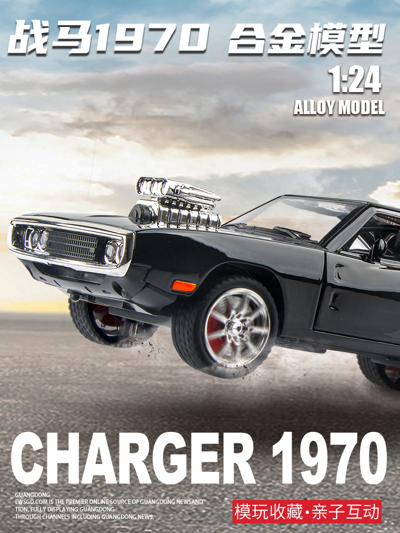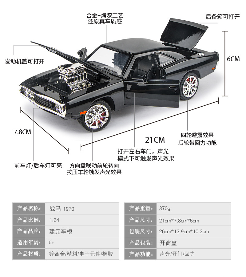 1:24道奇战马1970肌肉车合金声光回力四轮避震前轮转向汽车模型车