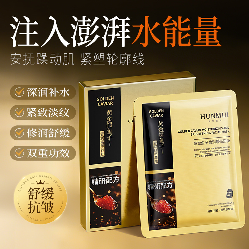 韩伦美羽黄金鱼子盈润透亮面膜保湿补水滋润黑金鲟鱼子面膜批发