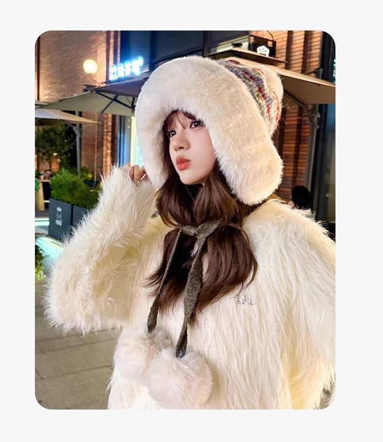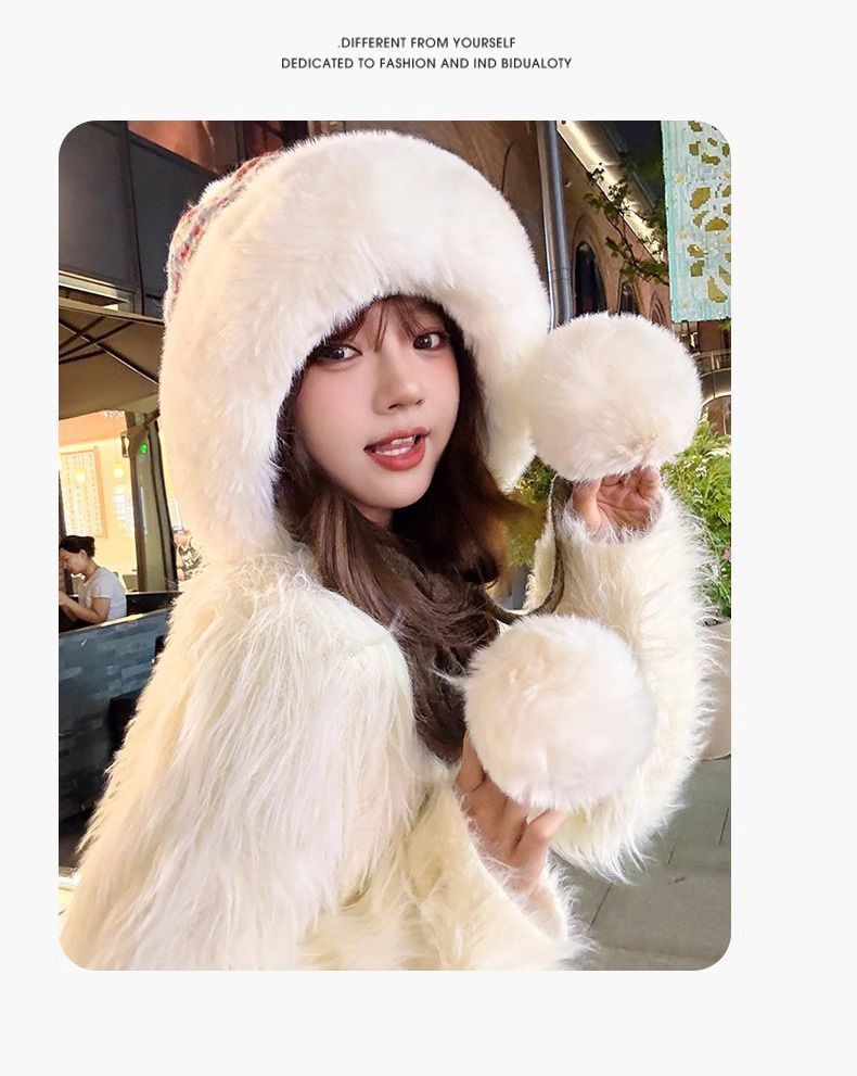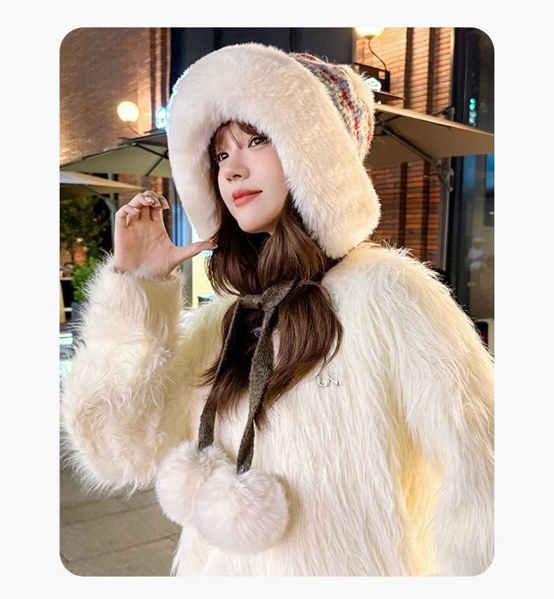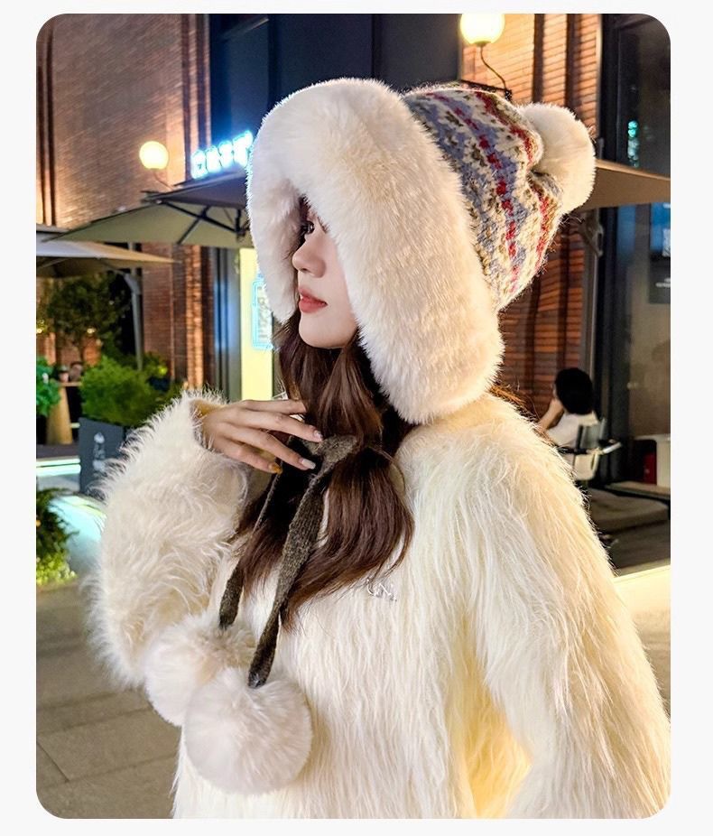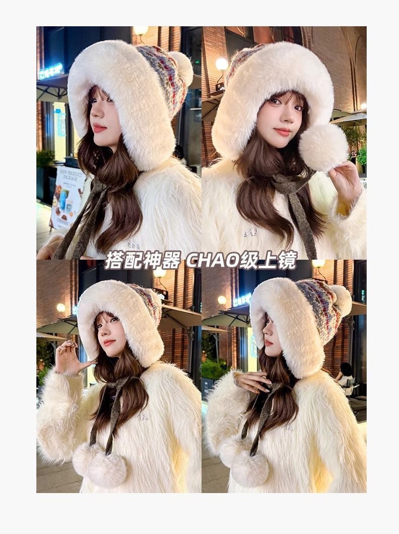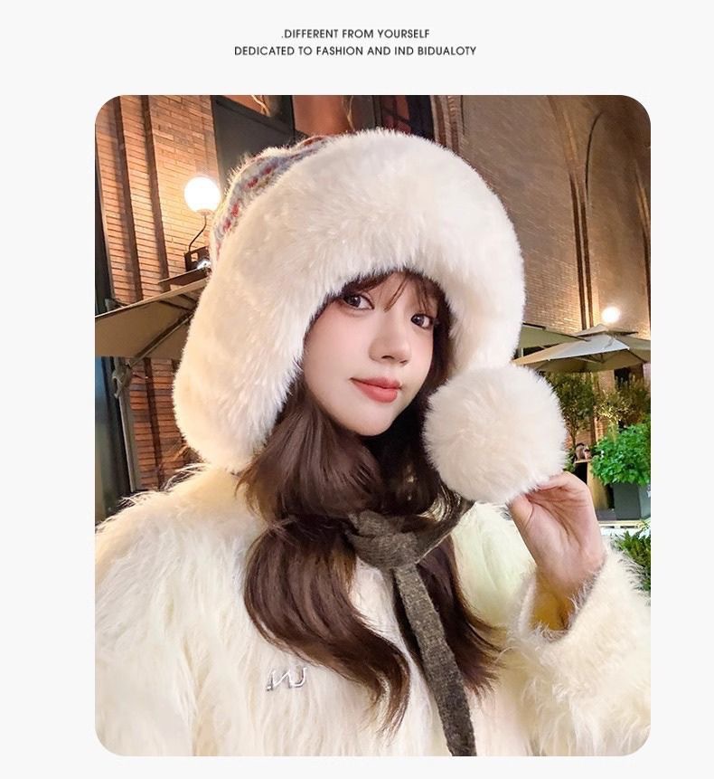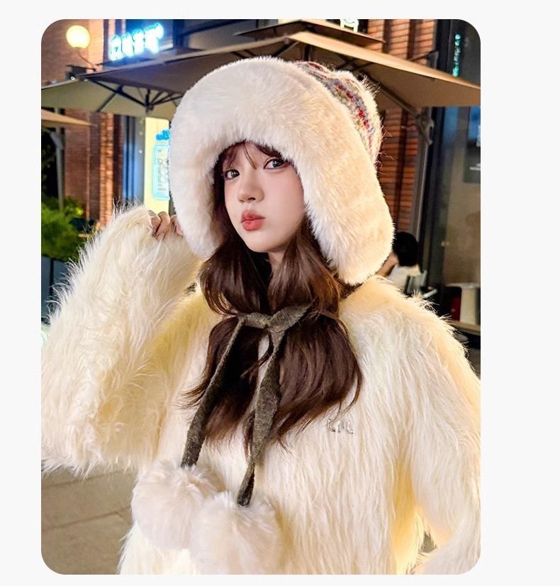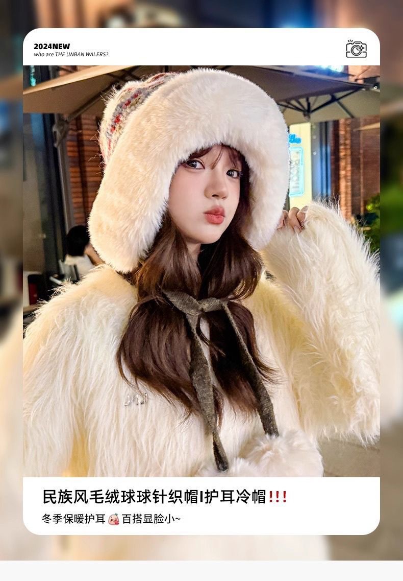 可爱毛绒帽子女冬季加绒针织毛线帽护耳保暖毛茸茸东北防寒雷锋帽