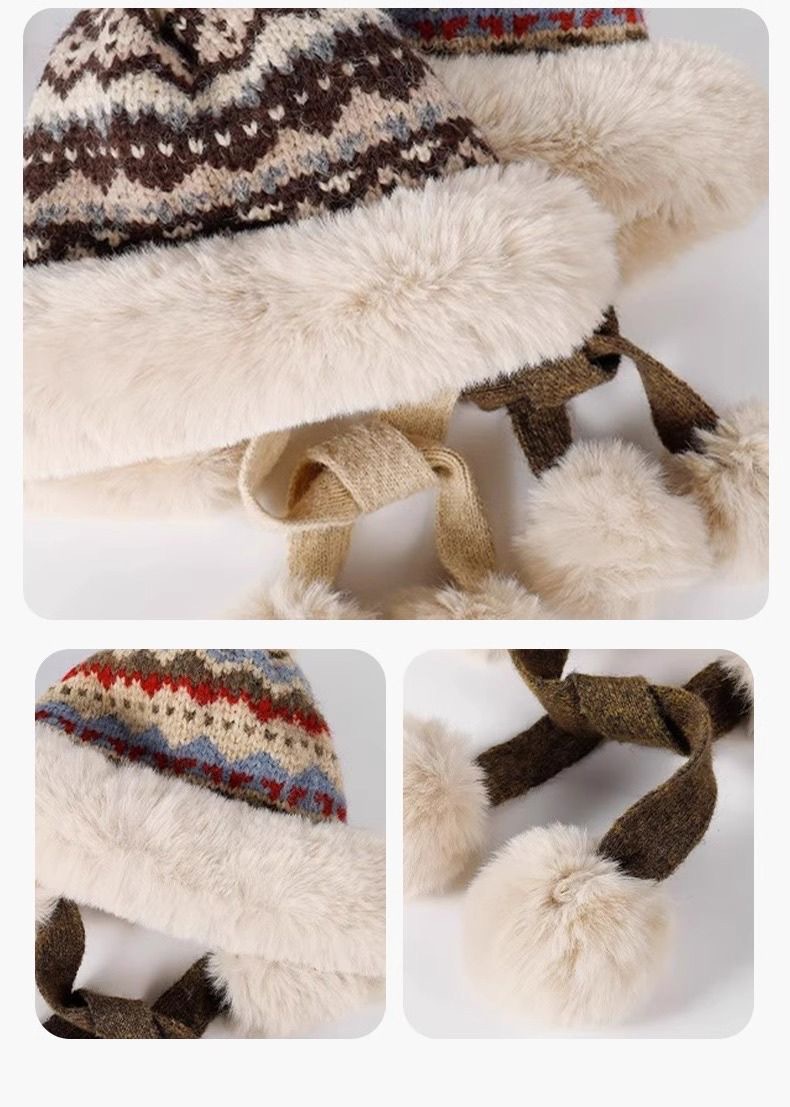 両用バッグ帽子レトロ着風保温漁師ニット耳保護民族風ウールバンド毛糸スタッカ帽子