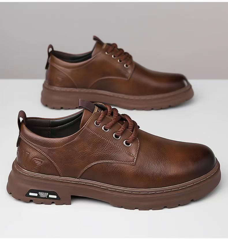 春秋新款男士厚底休闲皮鞋男复古工装系带潮流软底舒适男皮鞋代发