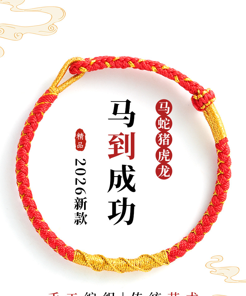2026年马年手工编织红绳手绳属龙兔牛羊狗本命年化红绳手链