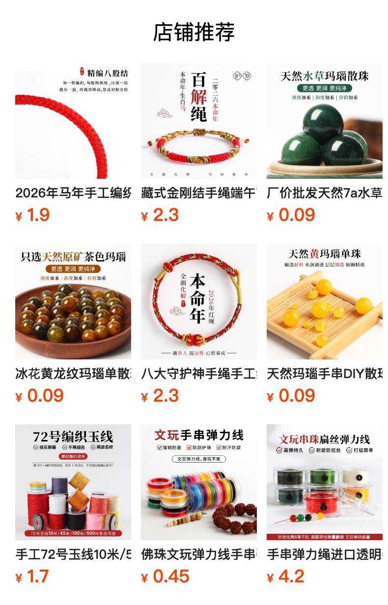 仿桃木小红绳手链手工编织手绳网店手链脚链小礼品义乌小商品批发