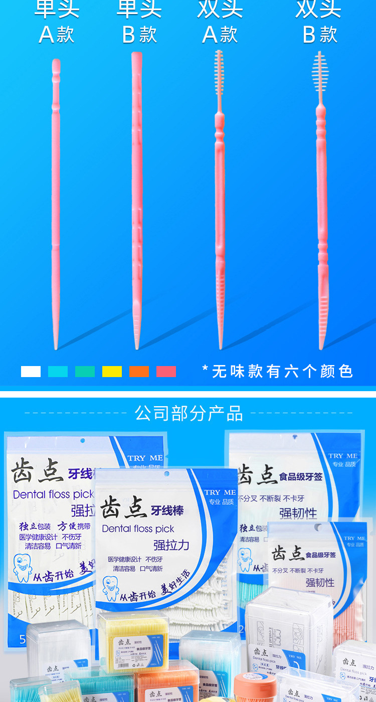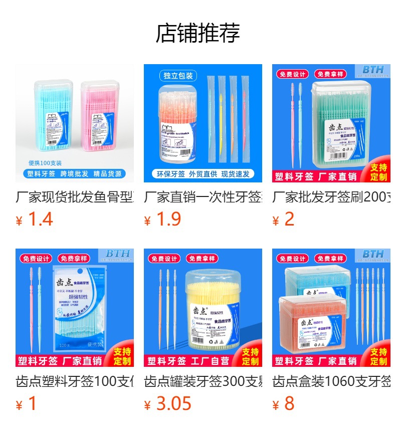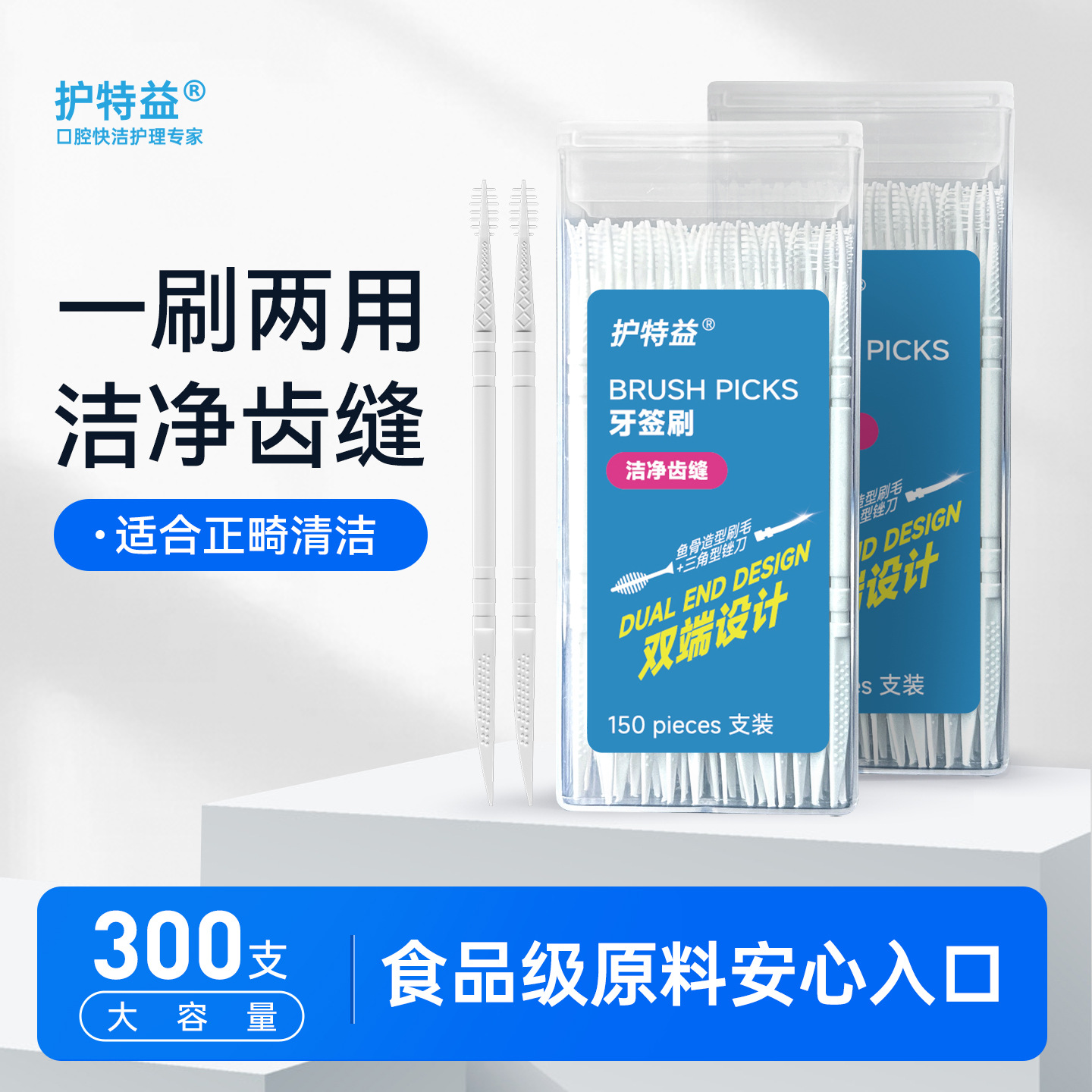 护特益正牙签刷牙线棒工厂直销批发双头鱼骨叶形塑料一次性牙缝刷