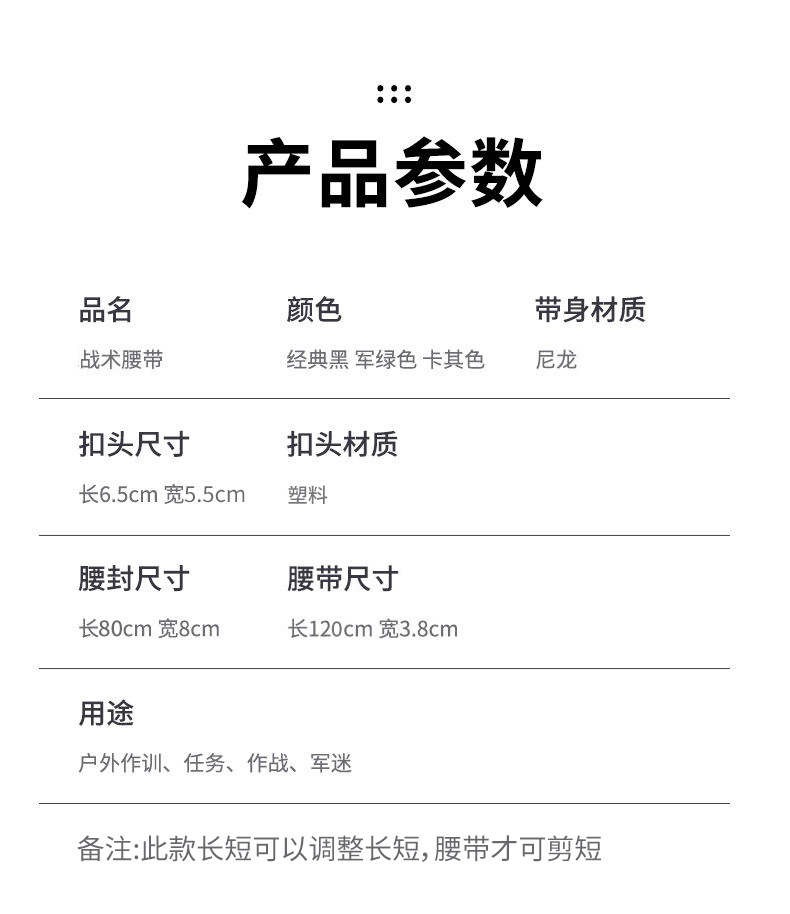 颜色 黑色【腰封+腰带】,军绿色【腰封+腰带】,卡其色【腰封+腰带】,黑色【单独腰封】,军绿色【单独腰封】,卡其色【单独腰封】