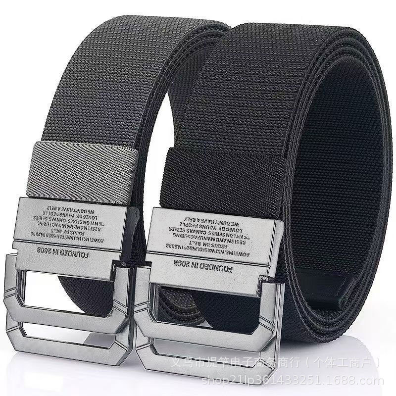 現物卸売りのダブルリングのズックのベルトの男性のベルトの韓国版のナイロンは青年の学生を編んでズボンのベルトを延長します。
