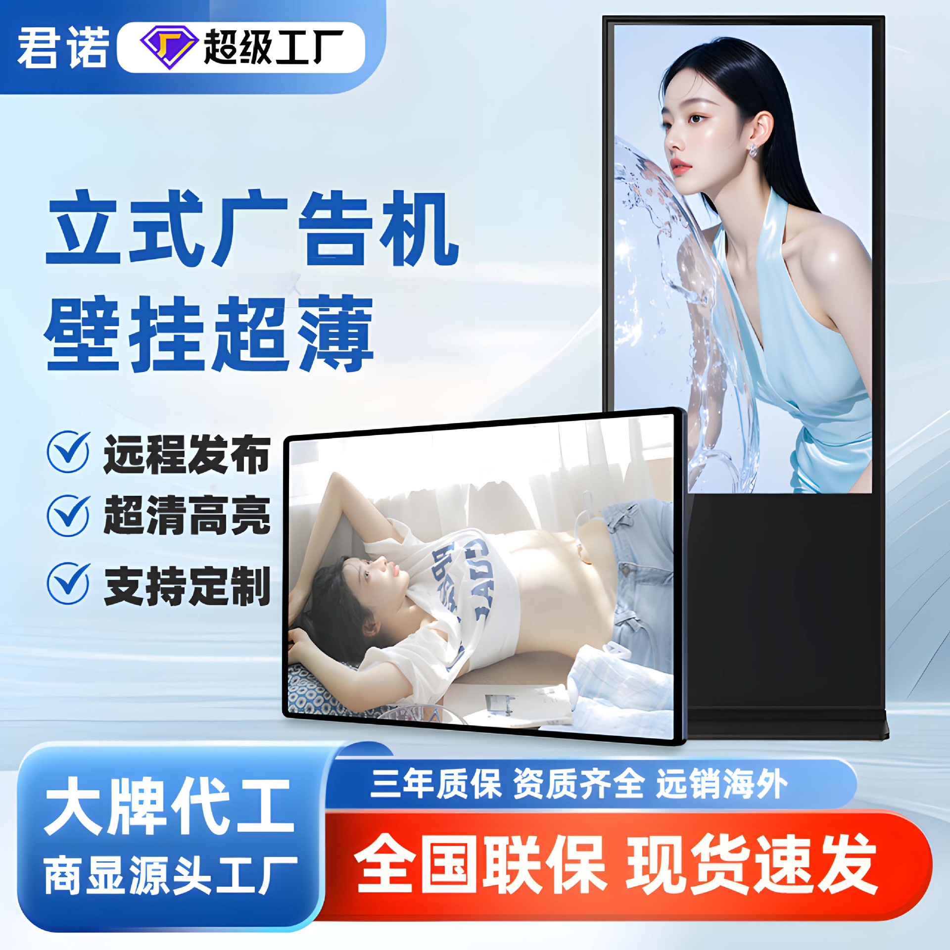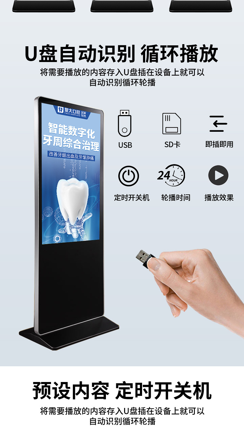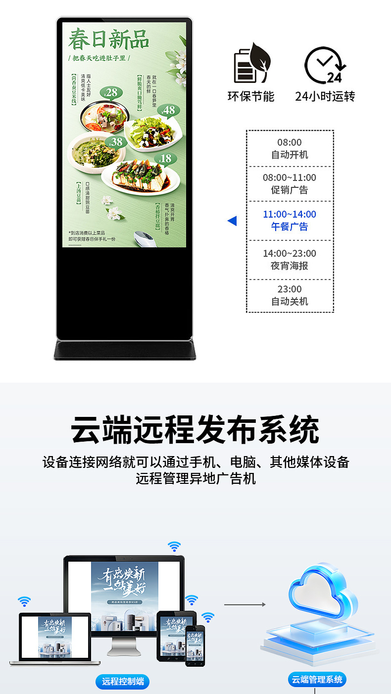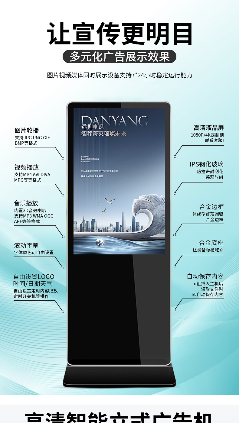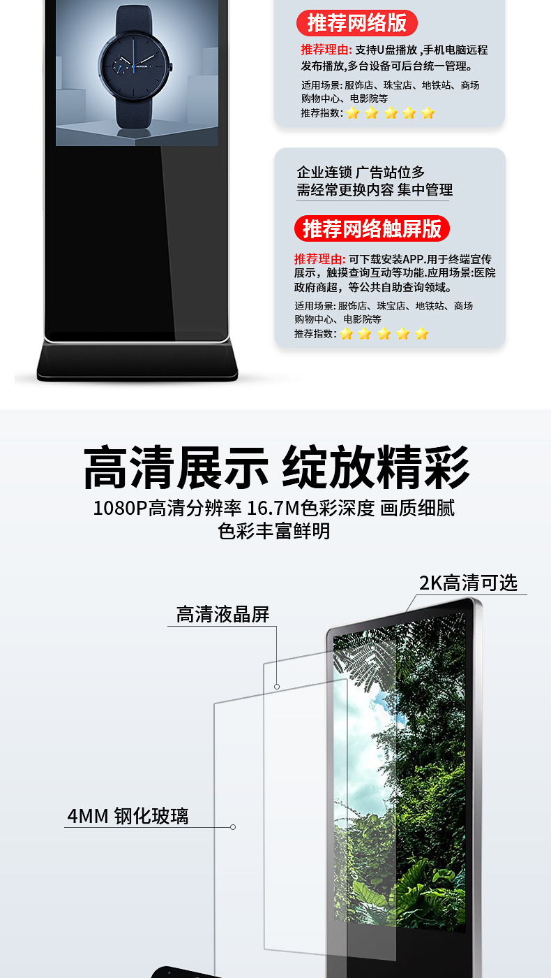 【美晶】壁掛け広告機 超薄型4Kフロアスタンド型セミアウトドアタッチ式縦型広告機 フルスクリーン一体型