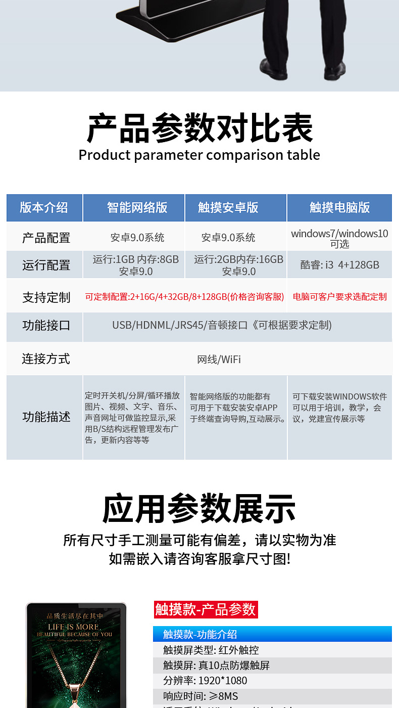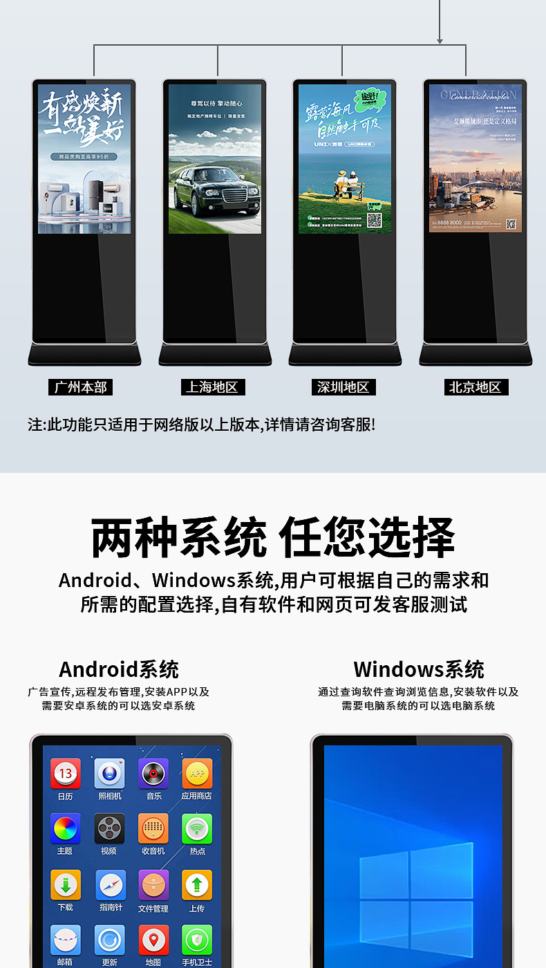 规格 43寸立式网络版,50寸立式网络版,55寸立式网络版,65寸立式网络版,75寸立式网络版,85寸立式网络版,43寸立式网络版(触摸款),50寸立式网络版(触摸款),55寸立式网络版(触摸款),65寸立式网络版(触摸款),75寸立式网络版(触摸款),85寸立式网络版(触摸款),75寸立式网络版(全面屏),85寸立式网络版(全面屏),75寸立式网络版(全面屏+触摸款),85寸立式网络版(全面屏+触摸款),32寸立式网络版
