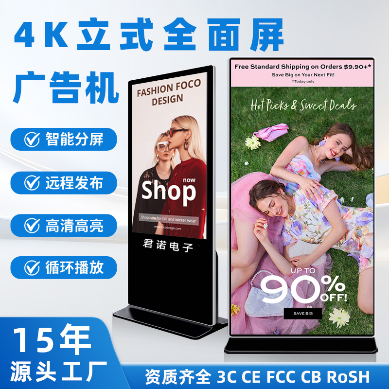 跨境43/50/55/65/75寸立式广告机全面屏触摸查询落地式广告一体机